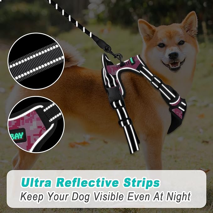 BARKBAY No Pull Dog Harness Large Step in Reflective Dog Harness with Front Clip and Easy Control Handle for Walking Training Running(Pink camo,L)