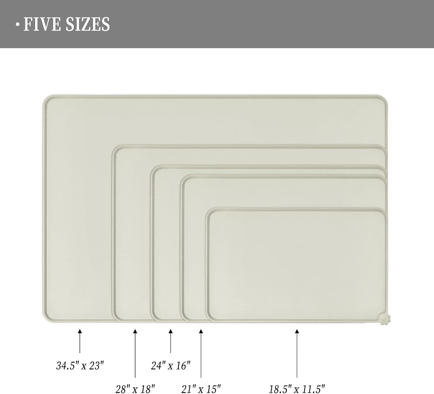 • Various sizes available: our pet mats come in 5 different sizes - 18.5" x 11.5", 22" x 14", 24" x 16", 28" x 18", and 32" x 24". Suitable for all kinds of pets, from puppies to large pets, choose the perfect size for your furry friends and avoid messy spills at mealtime