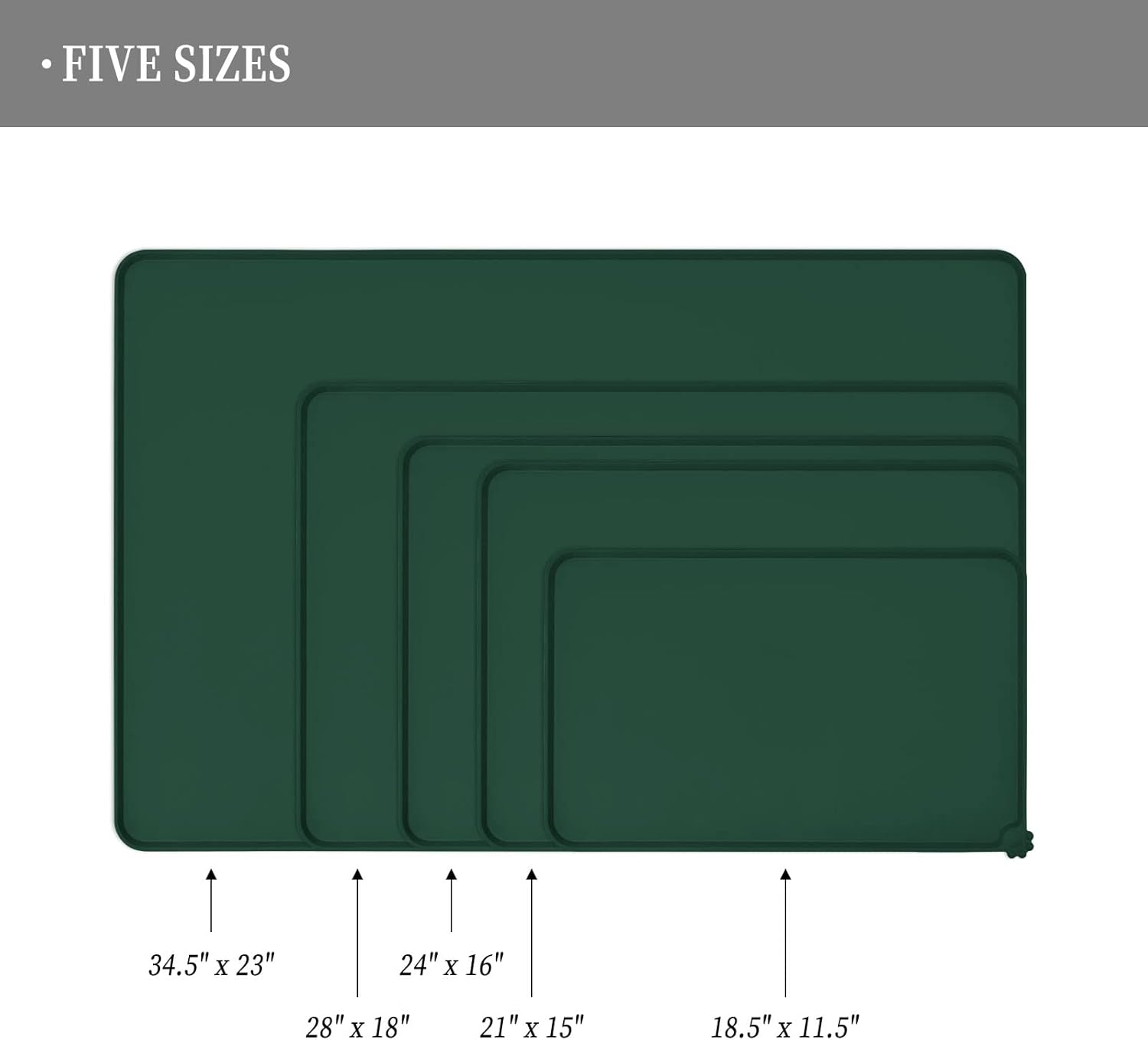 • Various sizes available: our pet mats come in 5 different sizes - 18.5" x 11.5", 22" x 14", 24" x 16", 28" x 18", and 32" x 24". Suitable for all kinds of pets, from puppies to large pets, choose the perfect size for your furry friends and avoid messy spills at mealtime