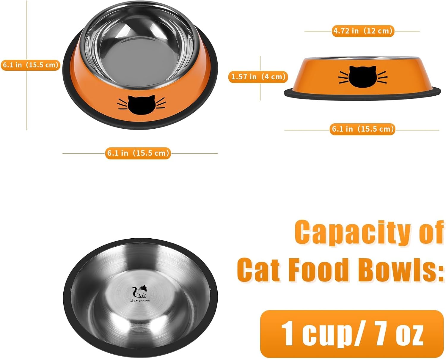 2Pcs Cat Bowls Non-Slip Stainless Steel Small Cat Food Bowls Unbreakable Thicken Cat Feeder 7 Oz Cat Dishes Suitable for Indoor Small Pets Removable Rubber Base Easily Clean Lovely Color