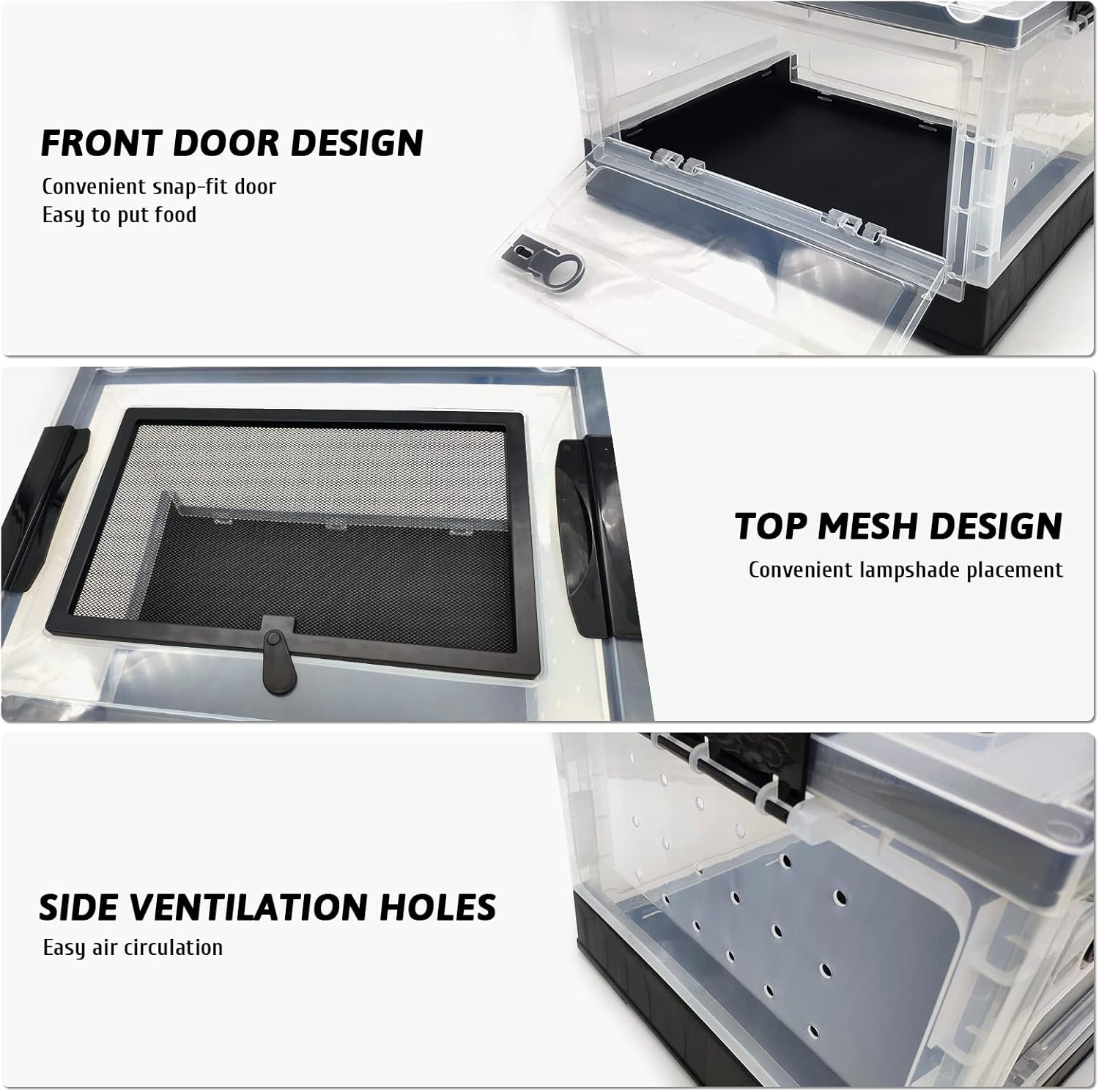 - Easy to Assemble: Very easy to install, only takes a few minutes to set up.If you want to travel with your pet, this tank is for you! Note: It is not recommended to feed crickets, worms, super worms and other feed