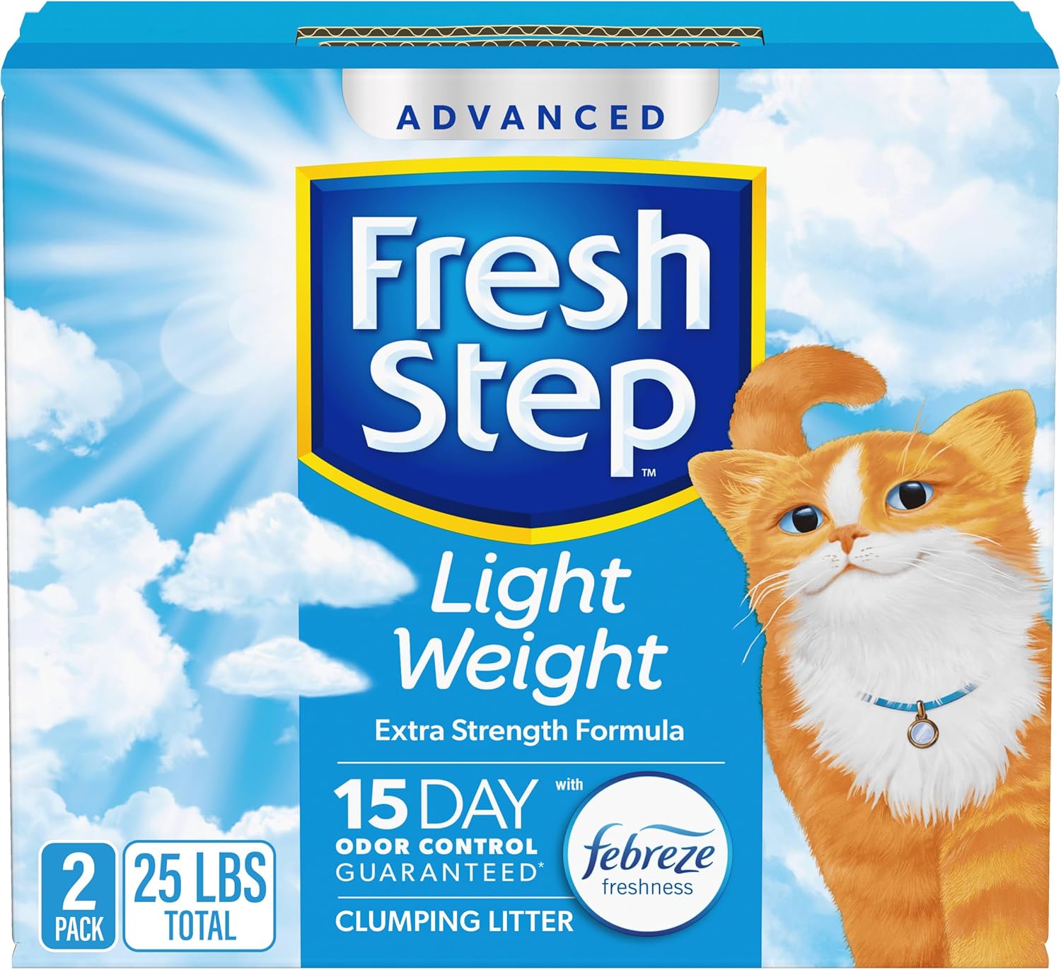 - FRESH STEP LIGHT WEIGHT CAT LITTER: Two 12.5 lb. boxes of Fresh Step Light Weight Advanced Extreme Clumping Litter with Febreze freshness that is 30% lighter for easy handling (1) Certain trademarks used under license from The Procter & Gamble Company or its affiliates