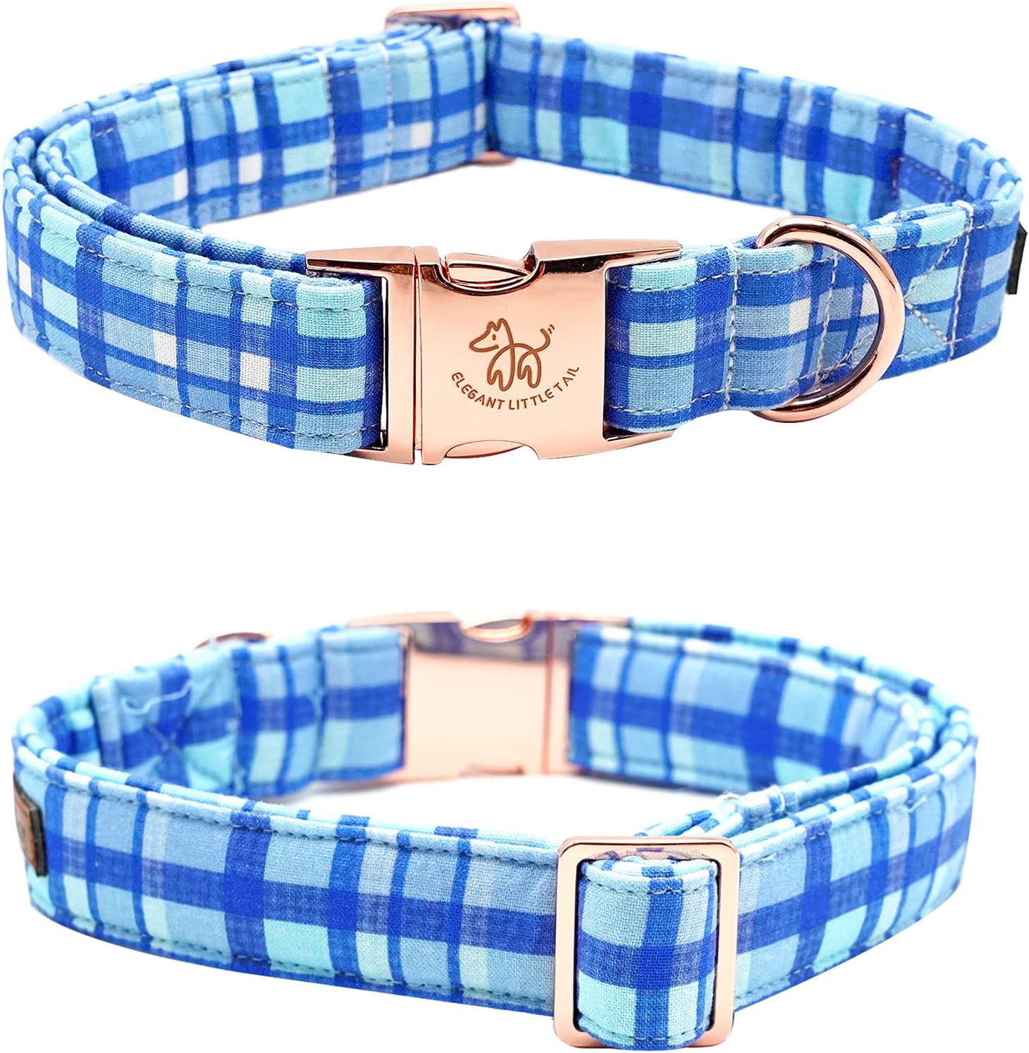 Elegant little tail Dog Collar with Bow - Blue Plaid Boy Dog Collar Cute Bowtie Pet Collar Adjustable Dog Collar for Medium Dog