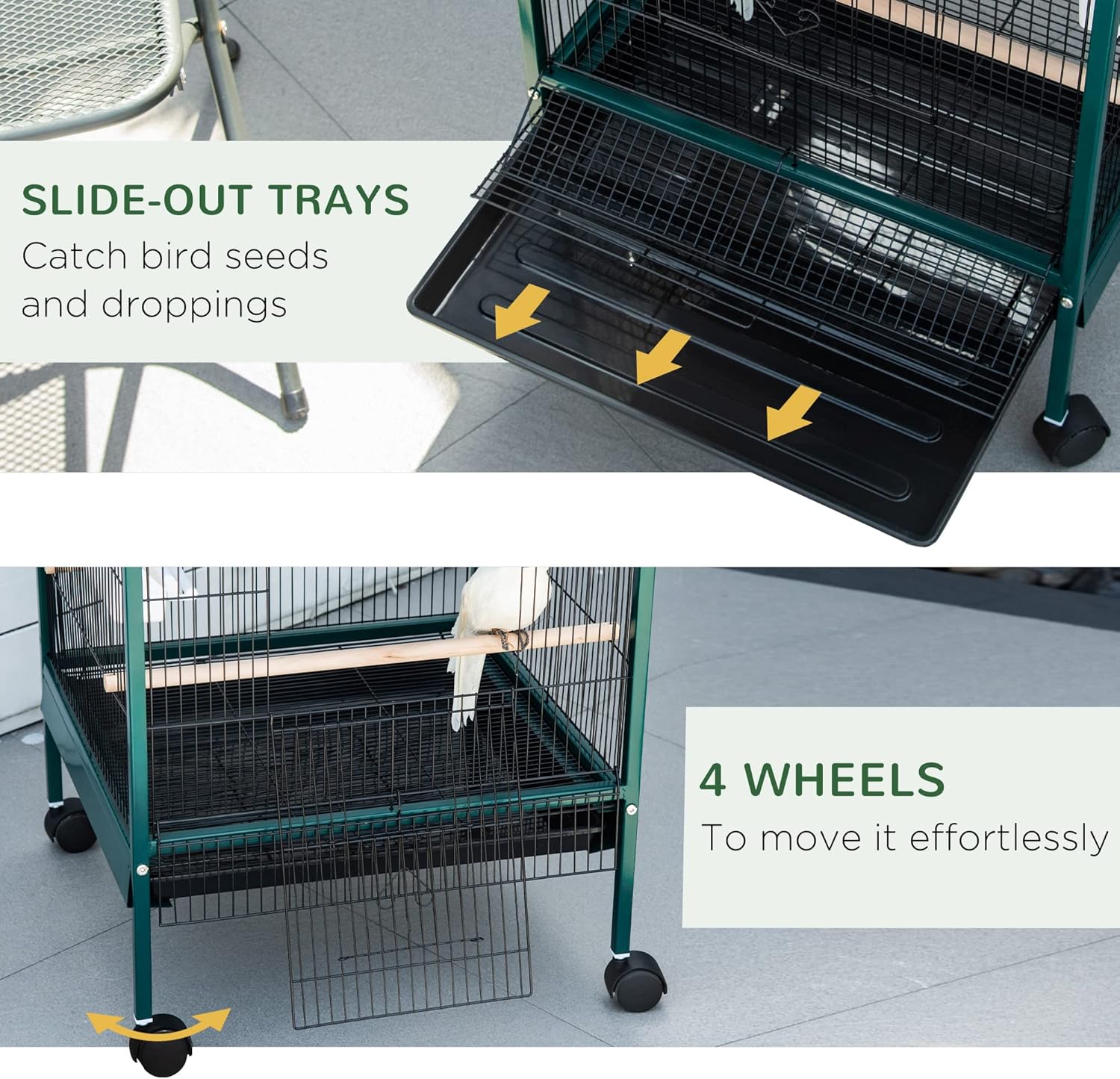 - Easy Rolling: With swift-rolling, quick-to-shift-around movement, this cage for birds can be rearranged effortlessly when it's in the way. The metal wire structure is a four-wheeled friend of portability.