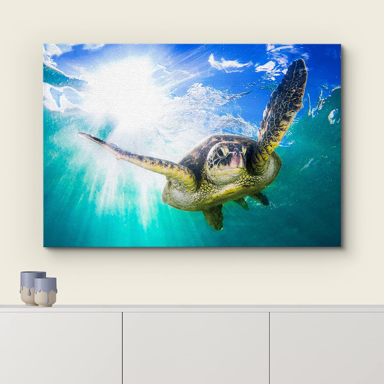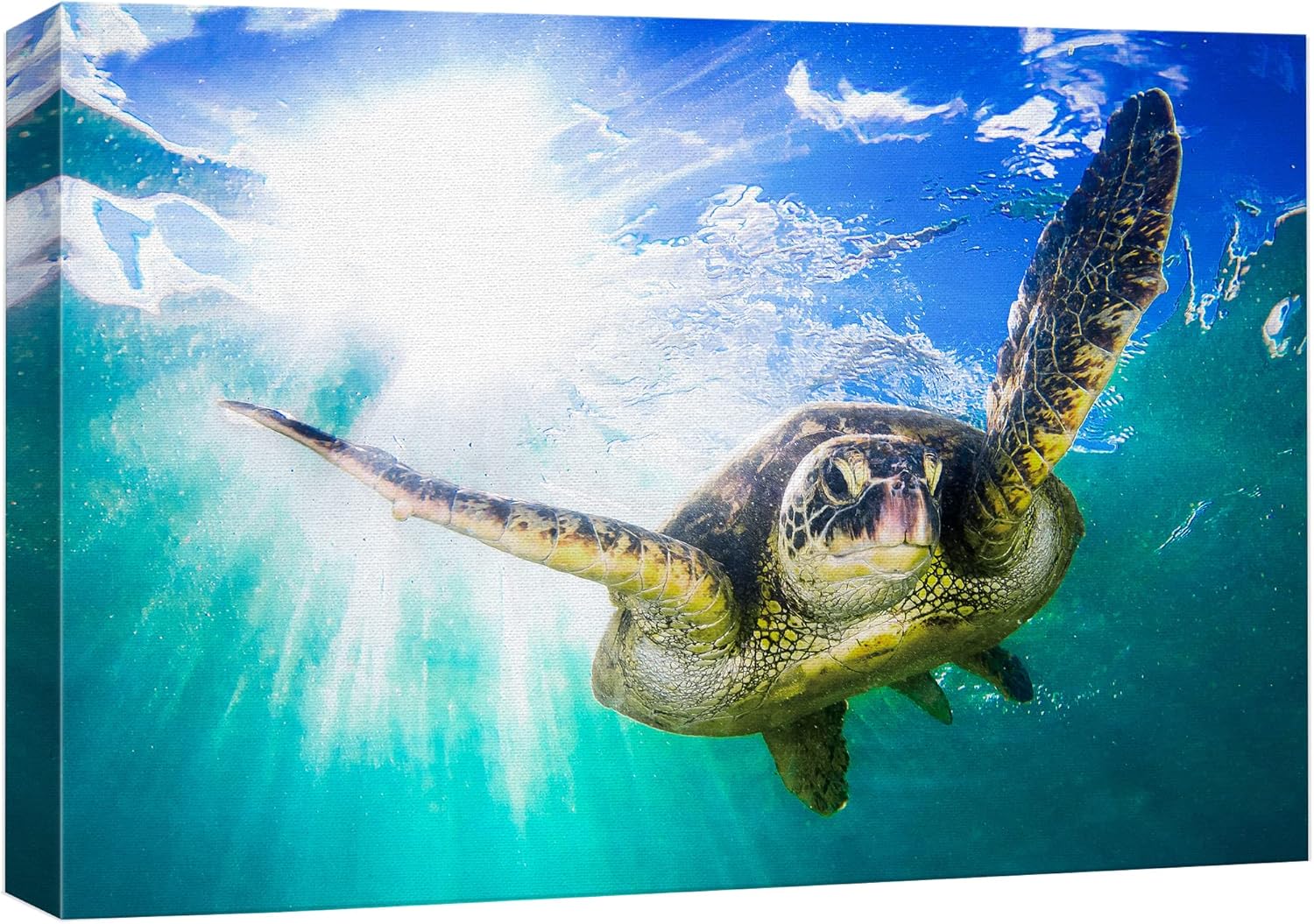 wall26 Canvas Print Wall Art Sunlight Tropical Ocean Underwater Turtle Nature Animals Photography Realism Rustic Scenic Landscape Wilderness Earth Colorful for Living Room, Bedroom, Office - 32"x48"