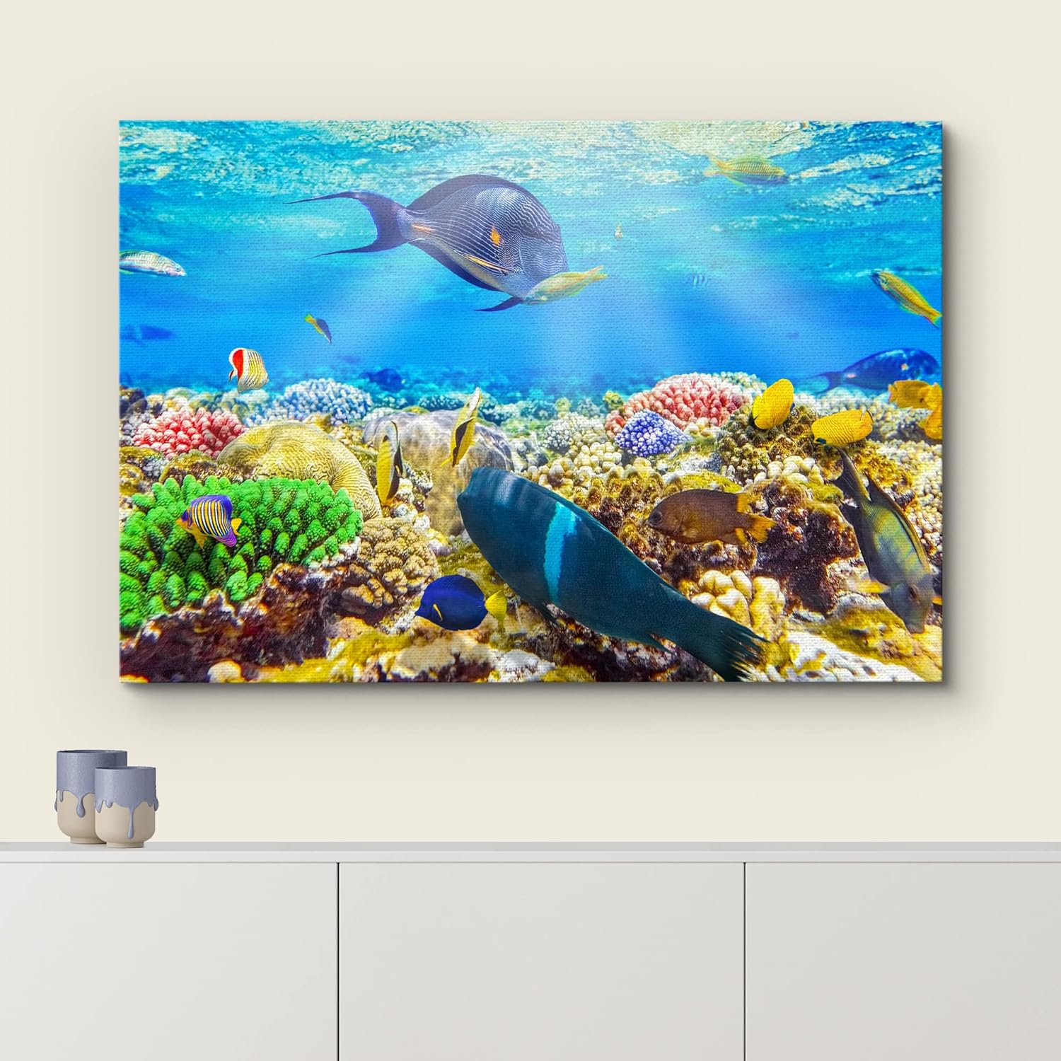 wall26 Canvas Print Wall Art Sunlight Ocean Sea Coral Reef Anemone Fish Nature Animals Photography Realism Rustic Scenic Landscape Wilderness Earth for Living Room, Bedroom, Office - 32"x48"