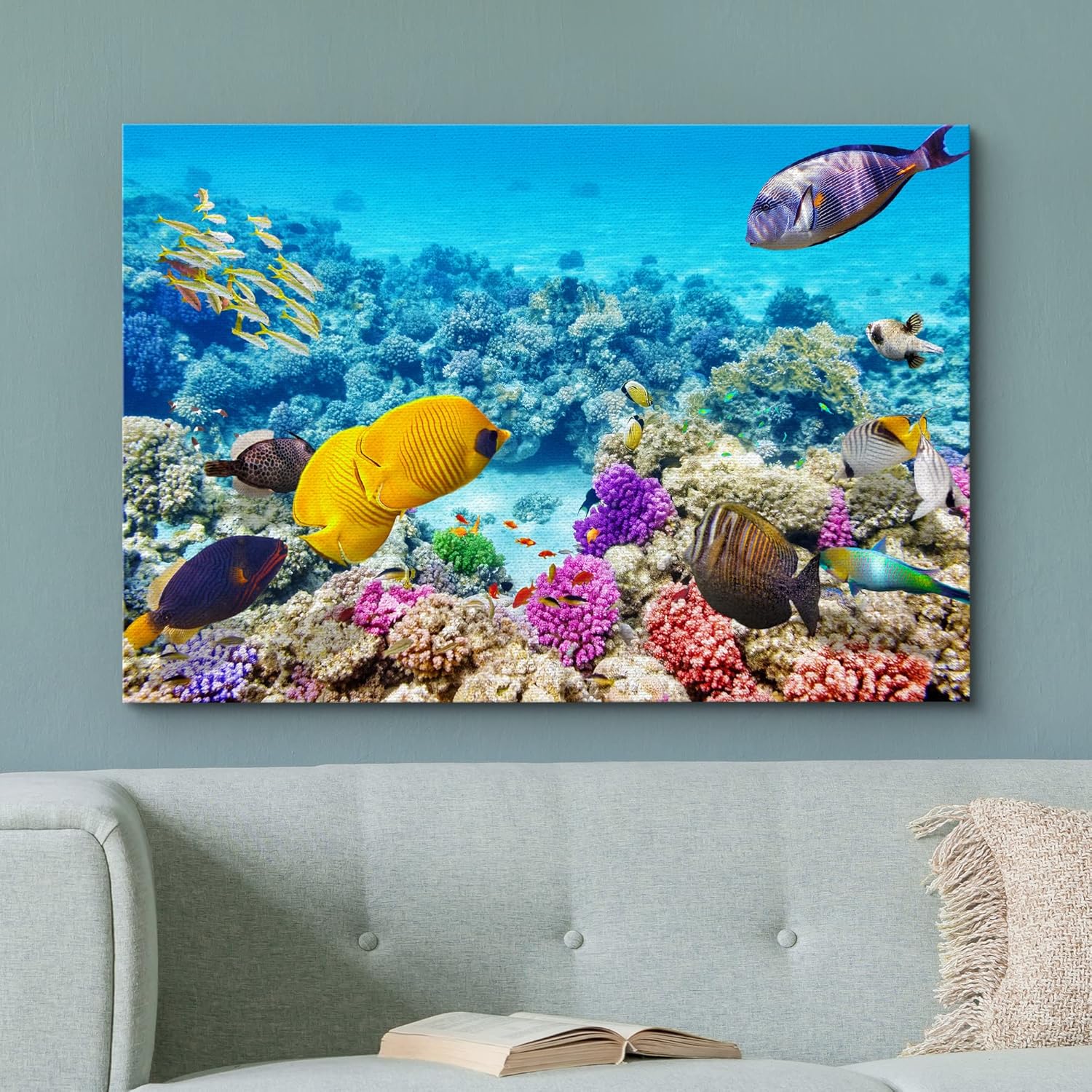 wall26 Canvas Print Wall Art Tropical Underwater Ocean Sea Fish Reef Nature Animals Photography Realism Rustic Scenic Landscape Wilderness Earth Colorful for Living Room, Bedroom, Office - 32"x48"