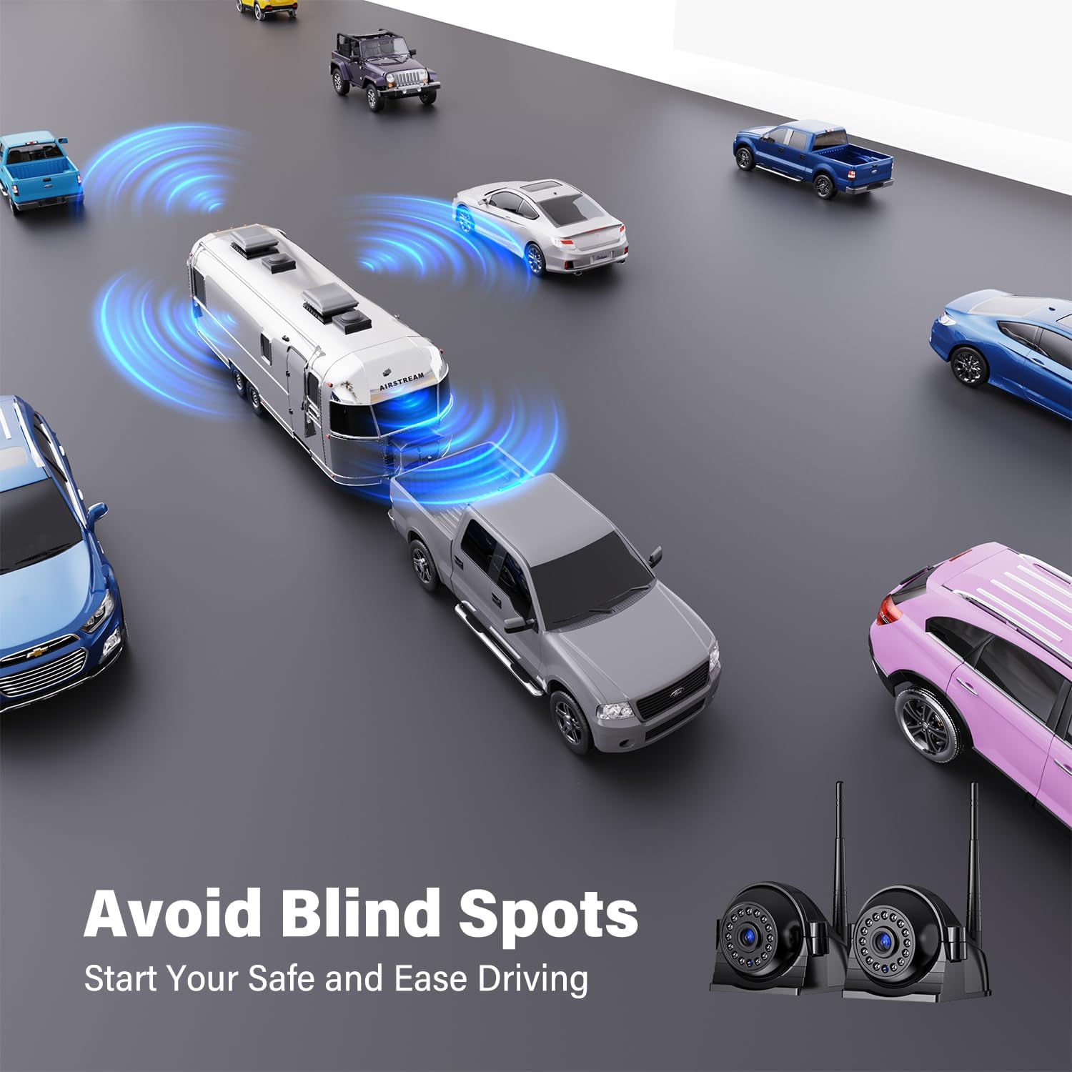 - 🚚🚚 Long Signal Transmission Distance - The max wireless working range is over 300ft in open area ,and 50ft on vehicle for reversing or 36ft on vehicle for continuously use, which is long enough for most vehicles, like Cars, Trucks, Pickups, Camper, SUVs, Trailers, and Minivans.