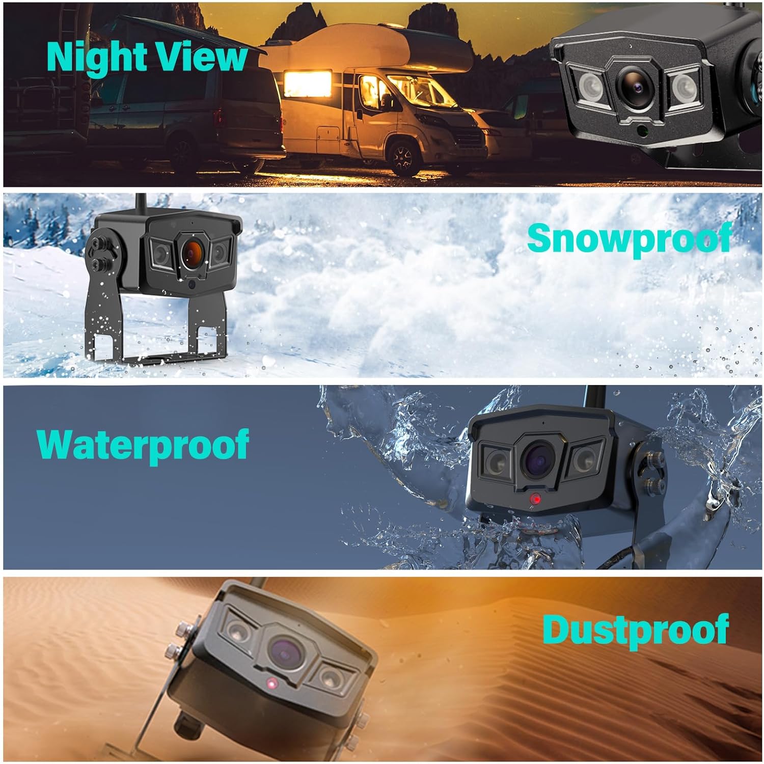 - 🚚🚚 IP69K Waterproof Backup Camera - The high quality backup camera is suitable for all kinds of vehicles. Build with IP69K waterproof standard, durable in rainy days for more than 2 years. With wide view angle and high-resolution sensor ensure high-definition and smooth image quality! The highest and lowest temperature resistance is -4°F~176°F. Suitable voltage range is 12V-24V.