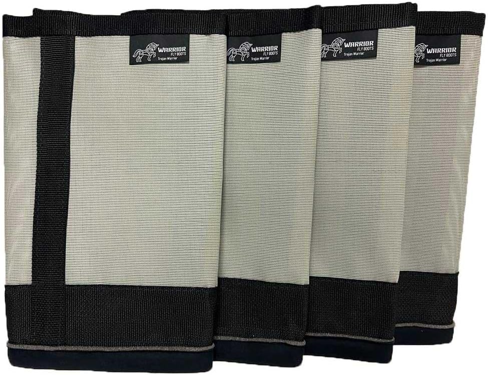 Warrior Fly Boots for Horses - Breathable Mesh Horse Boots for Fly Protection & Leg Comfort - Set of 4 (Trojan Warrior, Gray)