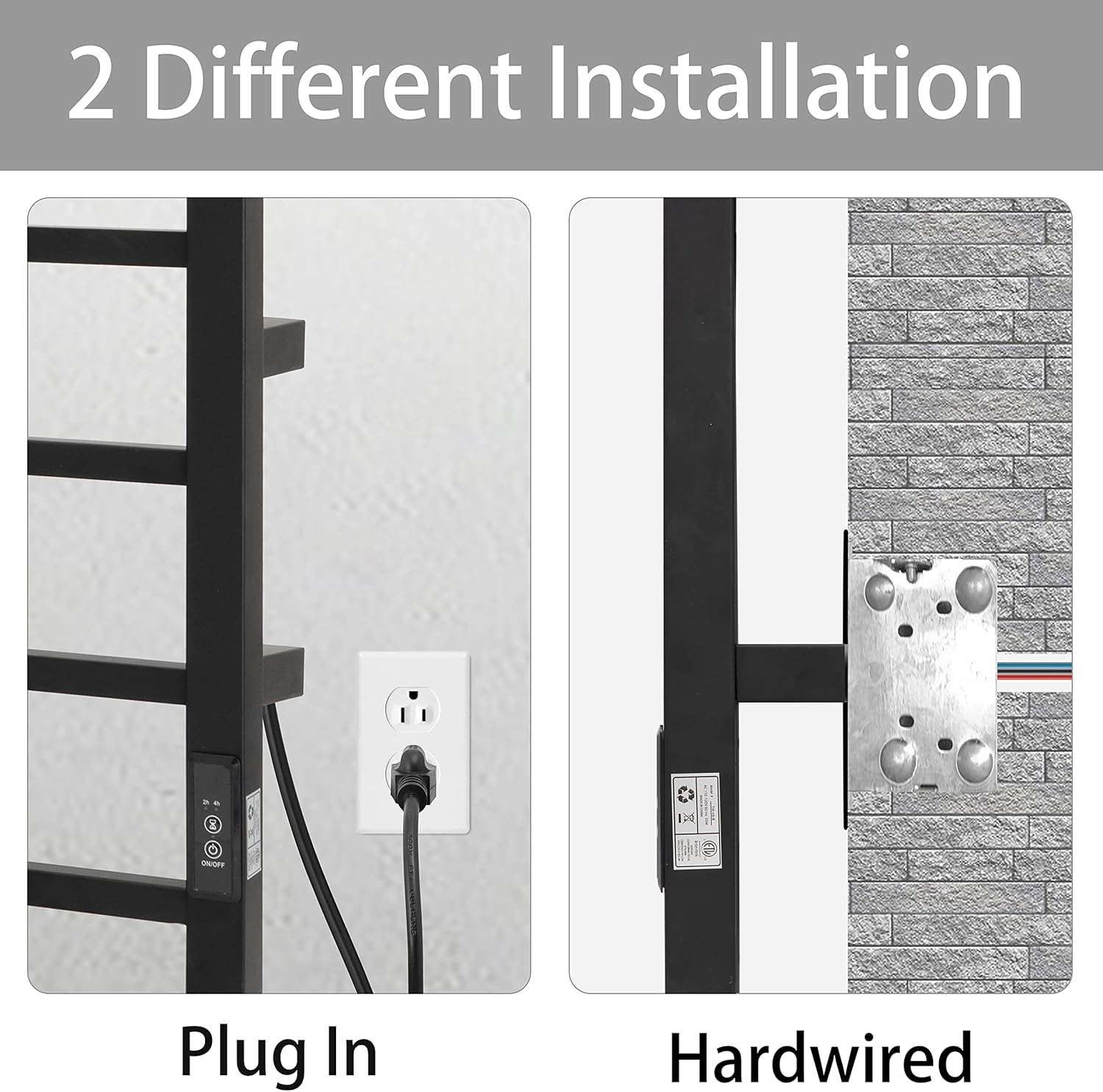 KEG Towel Warmer 4 Bars for Bathroom Wall Mounted Bath Towel Heater Hardwired and Plug-in with Built-in Timer Matte Black