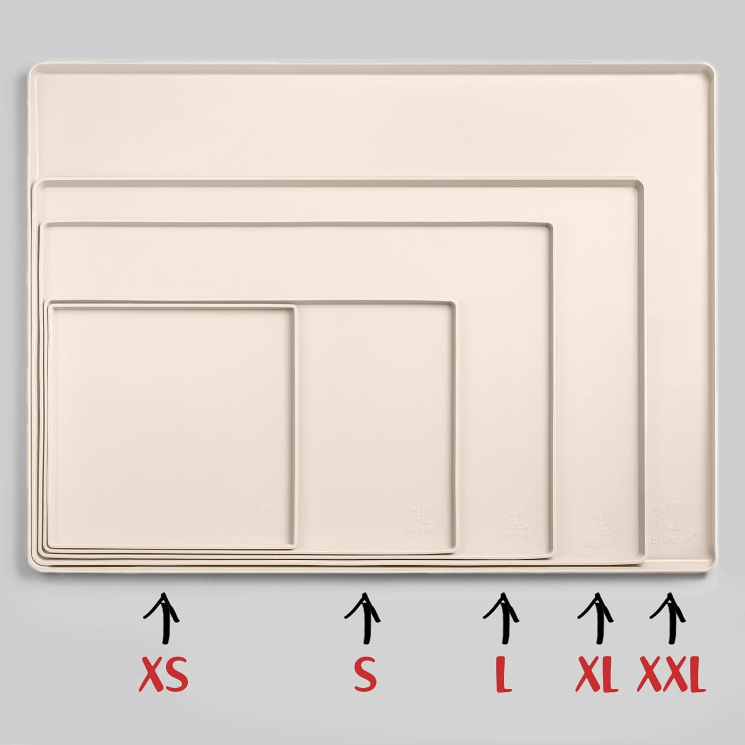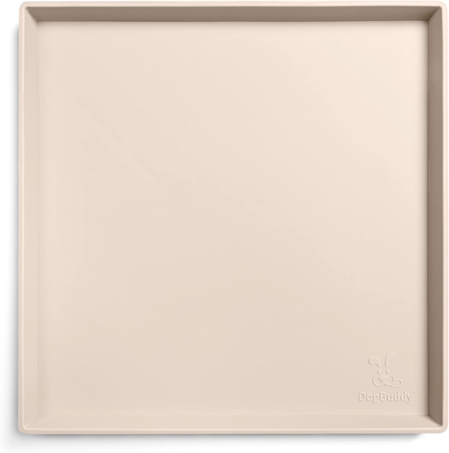 DogBuddy Dog Food Mat – Waterproof Dog Bowl Mat for Food and Water, Silicone Pet Feeding Mats for Floors, Non-Slip Placemat with High Edges for Dogs Bowls, Puppy Essentials (XS: 11" x 11", Vanilla)
