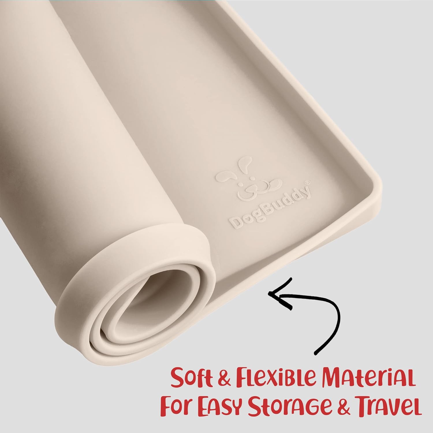 - Less Mess & Less Stress: Super high edge (0.6”) of DogBuddy Dog Food Mat keeps the spilled food and water on the mat and away from your beautiful floor. Silicone is naturally 100% waterproof, so what happens on the mat stays on the mat.
