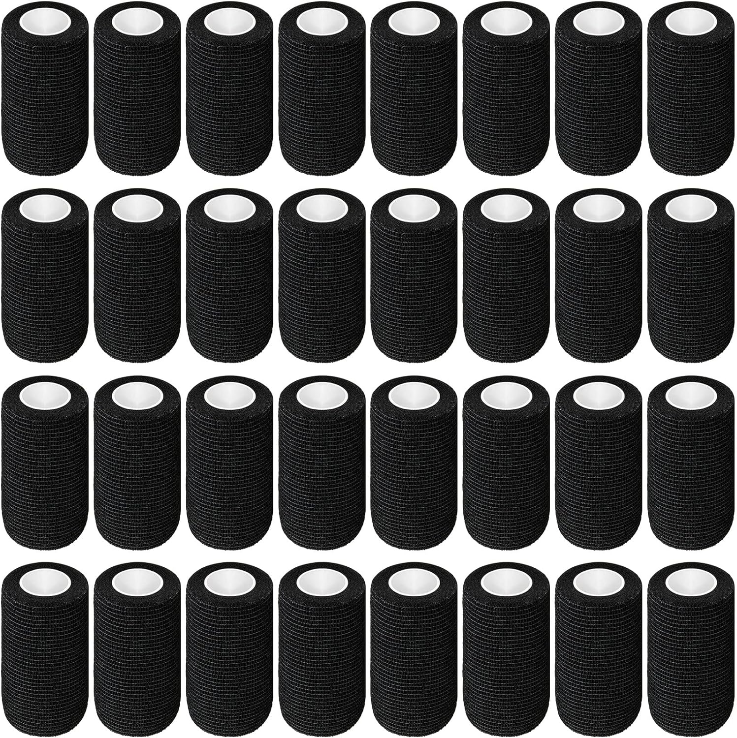 Treela 36 Pcs Self Adherent Bandage 4" X 5 Yard Wrap Breathable Cohesive Bandage Elastic Adhesive Tape for Stretch Athletic Sports Wrist Ankle(Black)