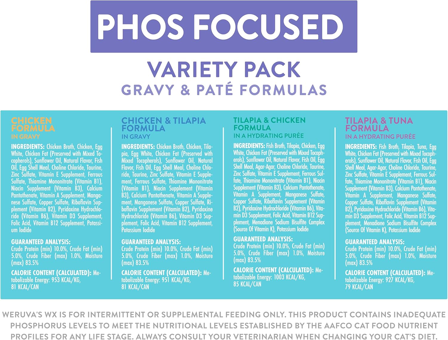 - Wx Phos Focused, Pate & Gravy Formulas Variety Pack, 3oz Can (Pack of 12)