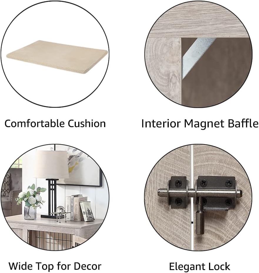 - ELEGANT & DUAL-PURPOSE: This is a nice piece of furniture that also serves as a dog crate. Appear as an elegant side table, end table, and nightstand. A great way to multi-use and show your decorative side to make your home stand out! Your choice of home creativity! The maximum support weight of the top is 200 lbs.
