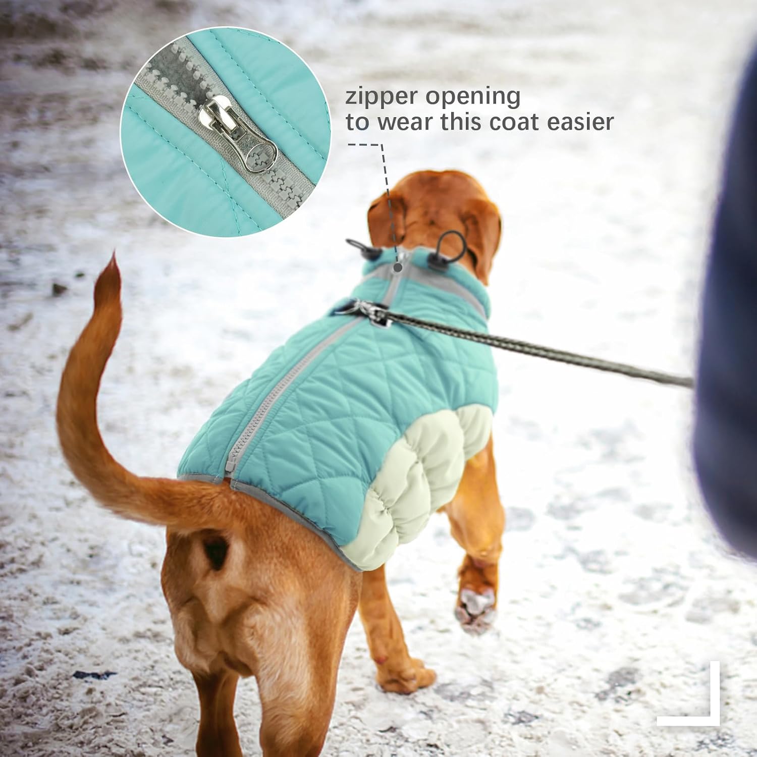 FUAMEY Dog Coat for Small Dogs,Waterproof Dog Winter Jacket with Harness Built in Puppy Cold Weather Coats Reflective Pet Vest with Zipper Warm Fleece Dogs Snowsuit Windproof Mint Green XS