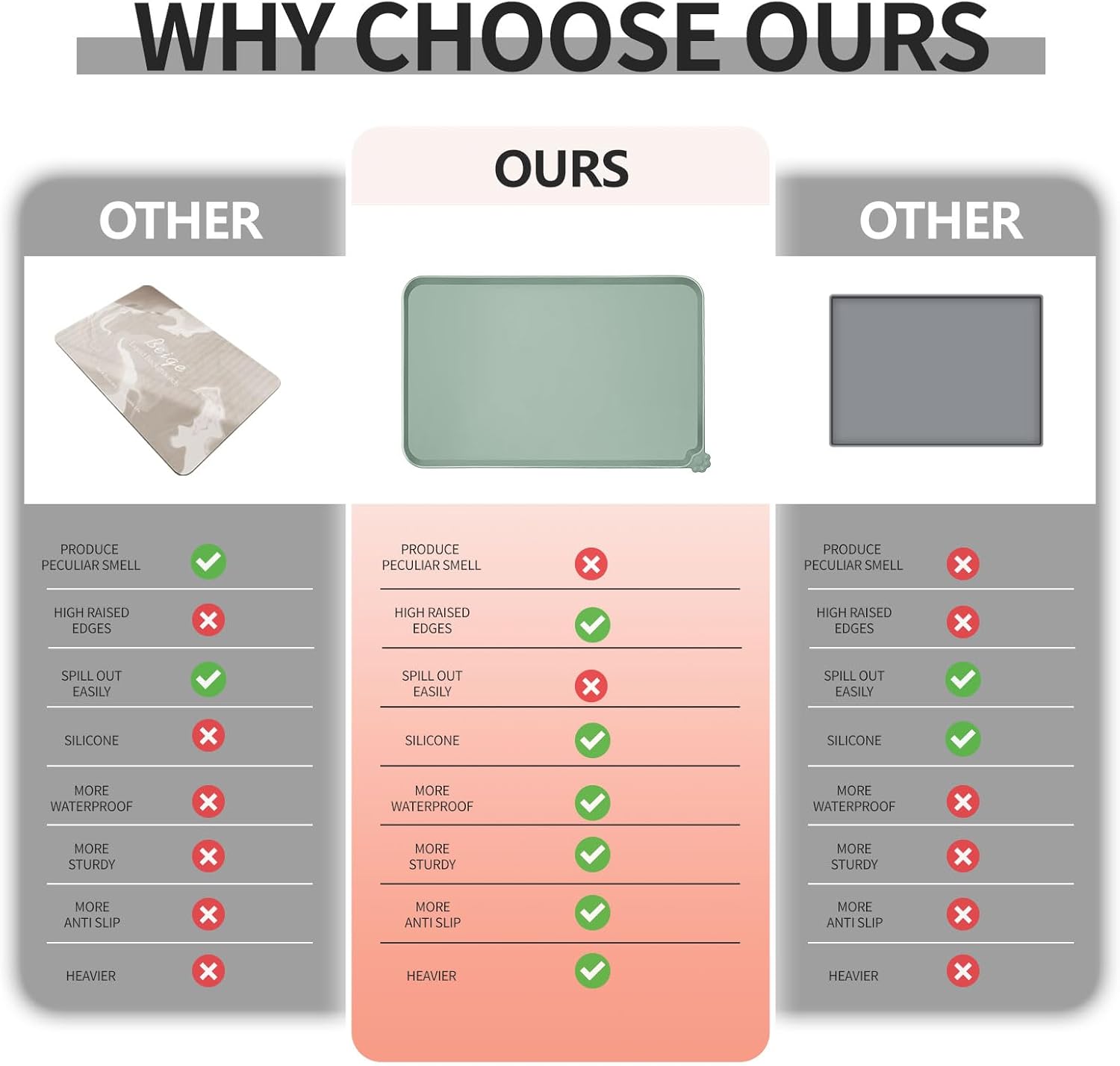 • Anti-slip design: our non-slip pet feeding mat ensures stability for your pet's bowl, preventing any water stains or spills on the floor. Enjoy peace of mind when feeding your pet, knowing that their food stays in place