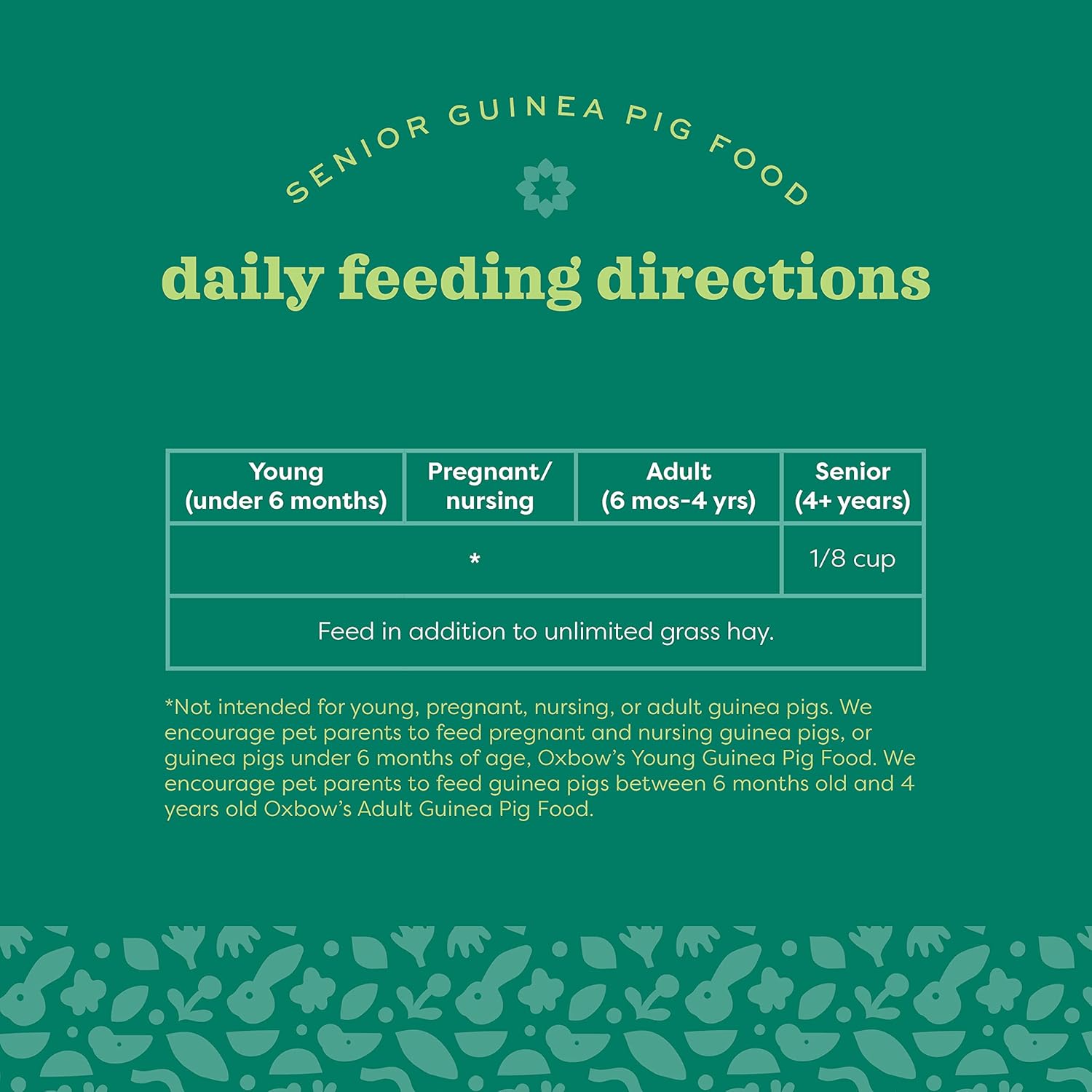 - SENIOR GUINEA PIG FOOD: Designed for senior guinea pigs aged 4+ years, our guinea pig food marries nutrition and taste perfectly; Artfully crafted with timothy, orchard, and oat hay, ensuring a high-fiber diet for your cherished pet's healthy life