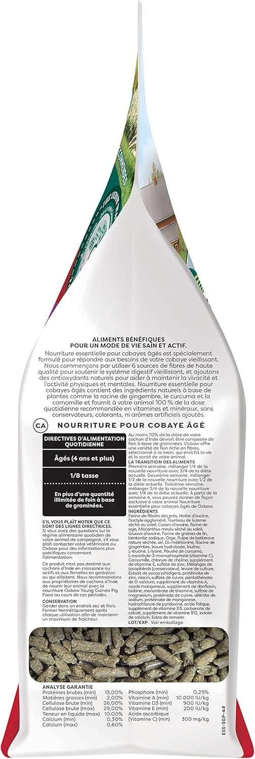 Oxbow Essentials Guinea Pig Food, Senior, Made Alfalfa for Guinea Pig, Pet Food Pellets with Vitamin C, Small Animal Pet Products, Made in USA, High Fiber, 4 lb. Bag