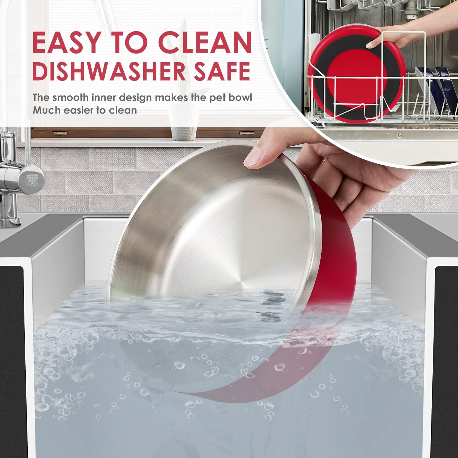 - SAFETY DESIGN-Pet feeding bowl adopts mirror polishing process, which has an elegant look and smooth touch. The flat edges will not hurt the dog's tongue, rust-proof and easy to clean.