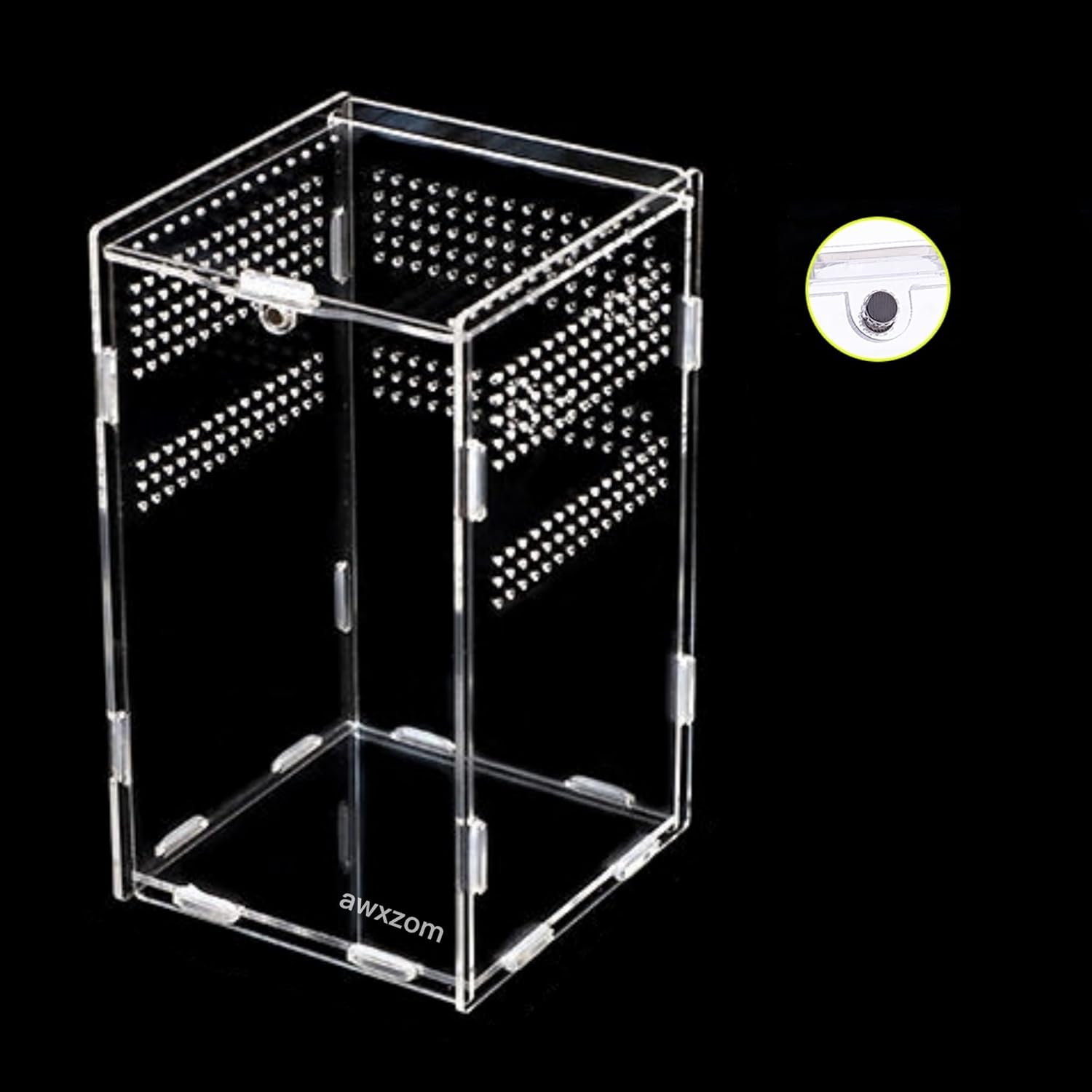 - 【Unique Design】Arboreal Acrylic reptile terrarium has about 500pcs 2mm vents, enough vents to ensure that animals will not suffocate when staying inside