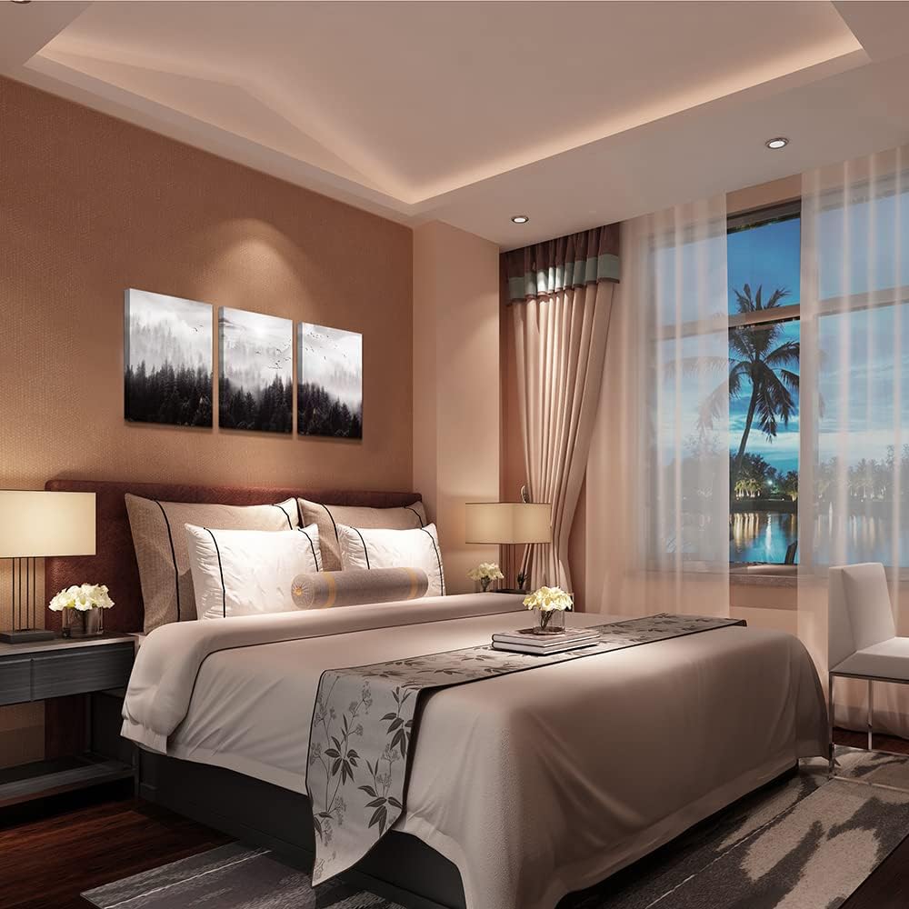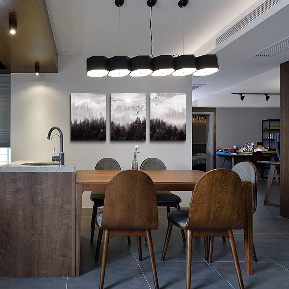 - WALL ART SIZE :Each Canvas Panel Is 12"X16"Inch (30cmx40cm), Total 3 Panels.3 Piece Set Foggy Forest Trees Scenery Wall Paintings Canvas Wall Art For Living Room Framed Wall Decor For Bedroom Room Wall Pictures Artwork Farmhouse Wall Decorations For Office Home Decoration