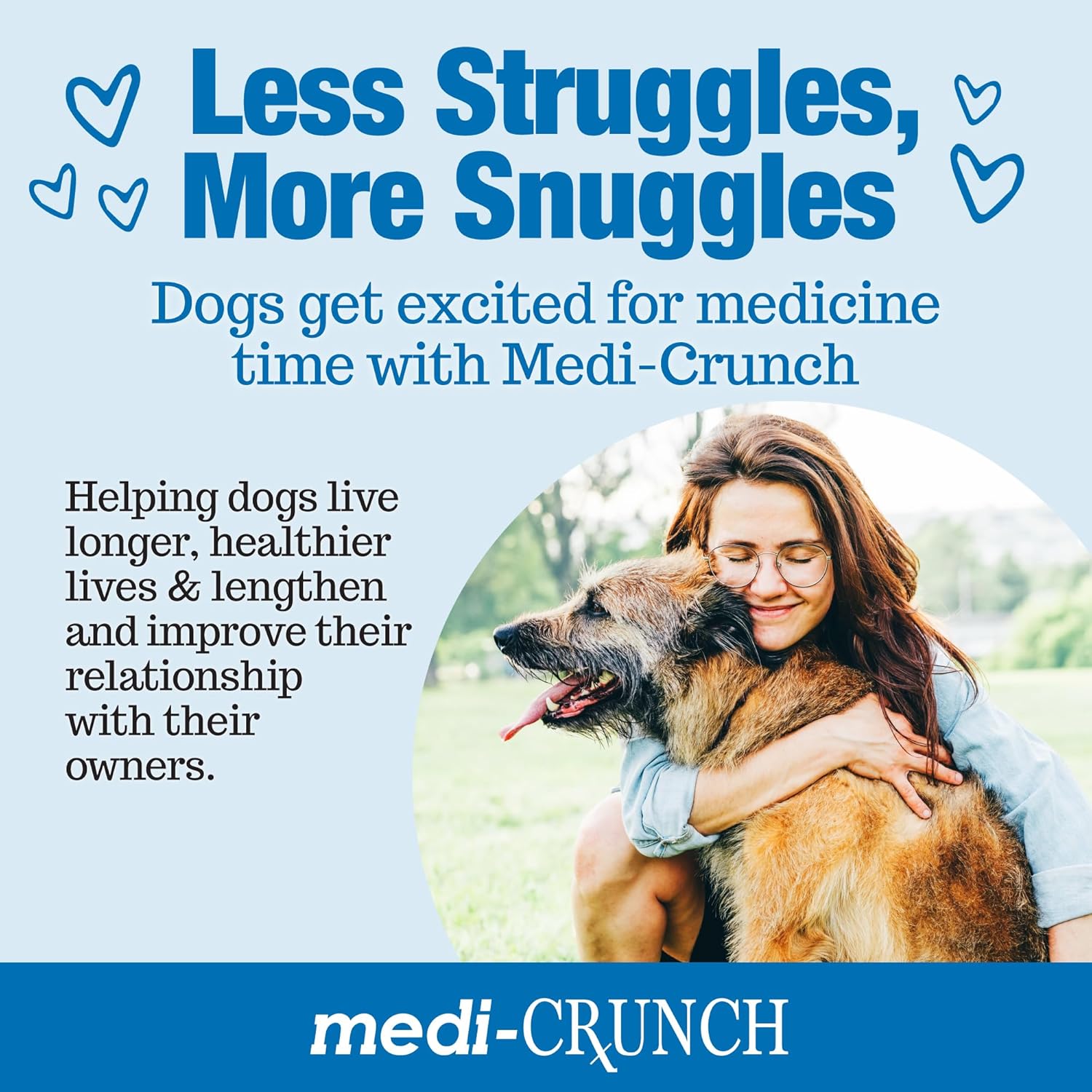 - HIDES SMELL OF MEDS, IRRESISTABLE REAL PEANUT BUTTER. Made with real peanut butter without artificial ingredients, it masks as delicious pill treats for dogs. Dog pill shooter and poppers makes your dog run away...Medi-Crunch makes your dog run to you!