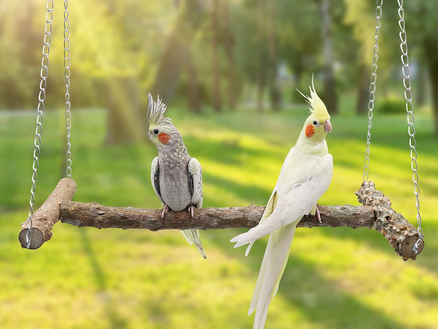 - 【Natural material】: The bird swing toy is made of wear-resistant and bite-resistant natural pepperwood, which is suitable for the bird's daily biting and beaking. The pepper wood is connected by pre-embedded bolts and nuts. The top chain and hook are made of stainless steel, which are durable and not easy to rust.