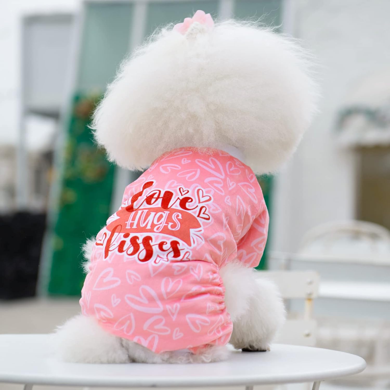 CuteBone Dog Valentine's Day Pajamas Puppy Onesies Small Dogs Soft Pjs Coat Cat Apparel Comfy Pet Clothes Outfit Doggie Bodysuit P273M