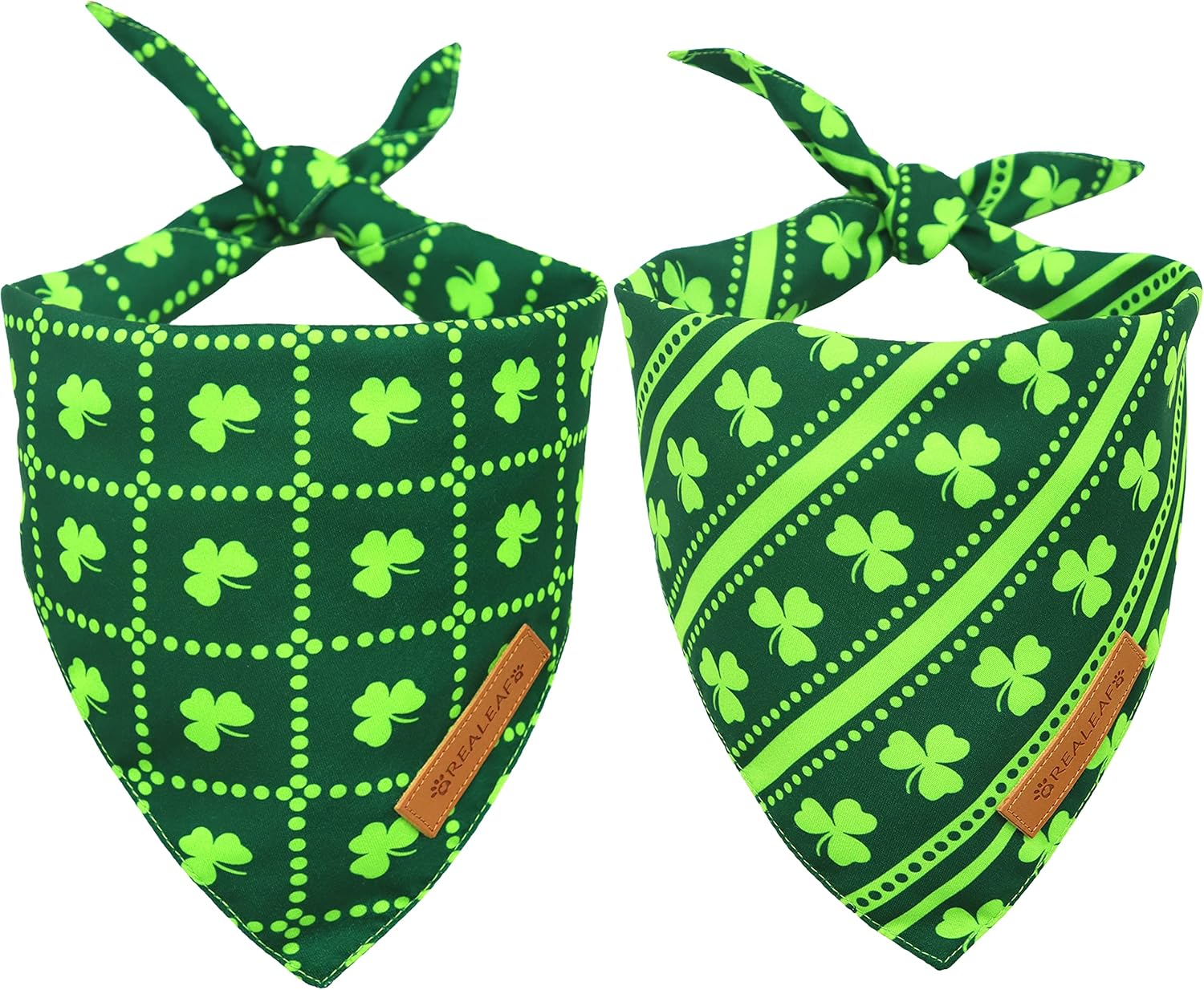 Realeaf St. Patrick's Day Dog Bandanas 2 Pack, Reversible Green Shamrock Pet Scarf for Boy and Girl, Premium Durable Fabric, Holiday Bandana for Small Medium Large and Extra Large Dogs (Small)