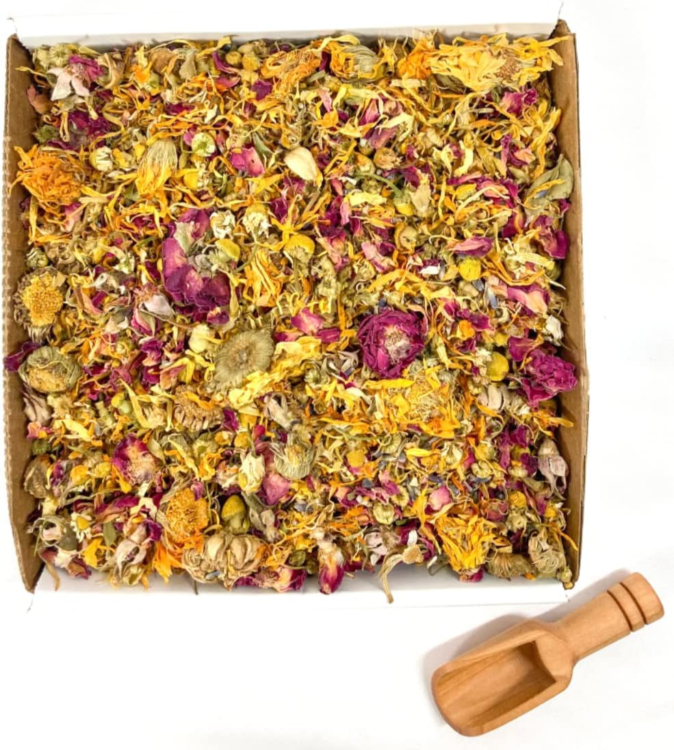 - ✔️EASY TO USE: Use included wood mini scoop to add herbs to daily feed. Made in Missouri with organic basil, rose petals, calendula (marigold), lavender, echinacea, nettle, raspberry leaf, chamomile. Comes with a mini scoop for easy feeding.
