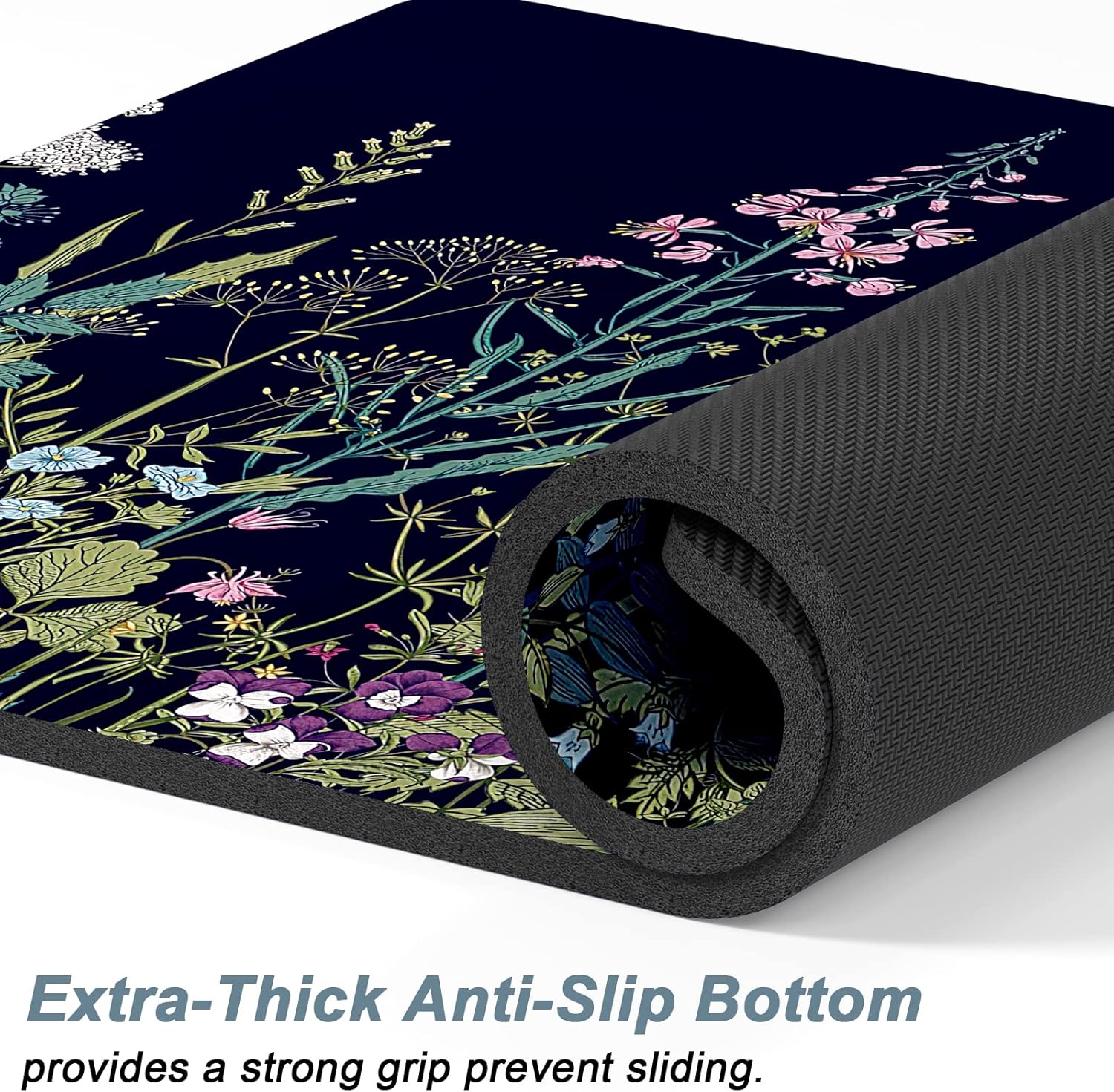 Rnivvi Dog Food Mat, 12" x 19" Flower Absorbent Dog Cat Bowl Mat for Food and Water, Cute Anti-Slip Rubber Pet Feeding Rug Protect Floors, Puppy Placemat for Feeding & Watering Supplies,Black Floral