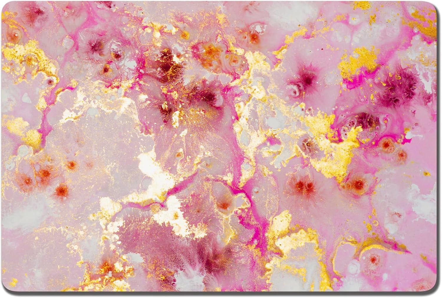 Rnivvi Dog Food Mat, 16" x 24" Absorbent Dog Cat Bowl Mat for Food and Water, Cute Anti-Slip Rubber Pet Feeding Rug Protect Floors, Puppy Placemat for Feeding & Watering Supplies, Pink Gold