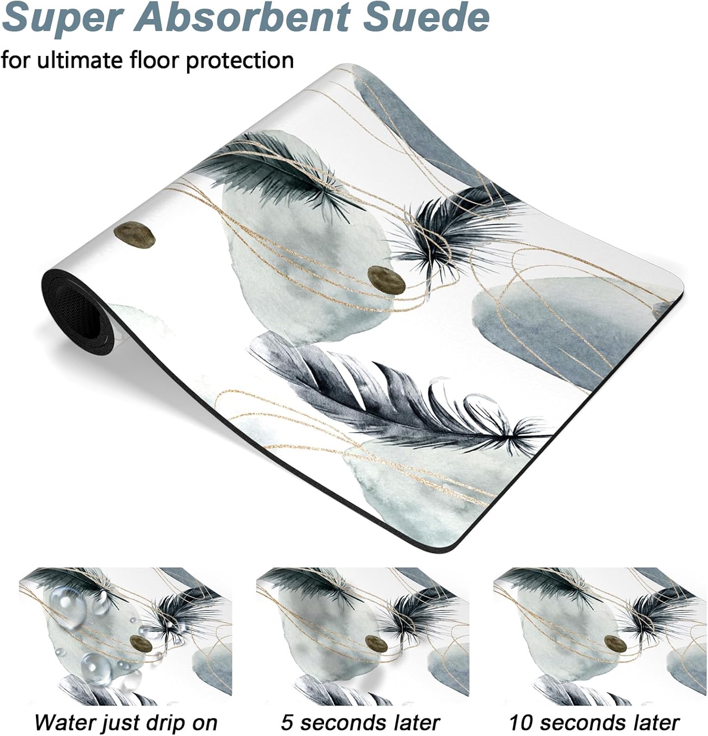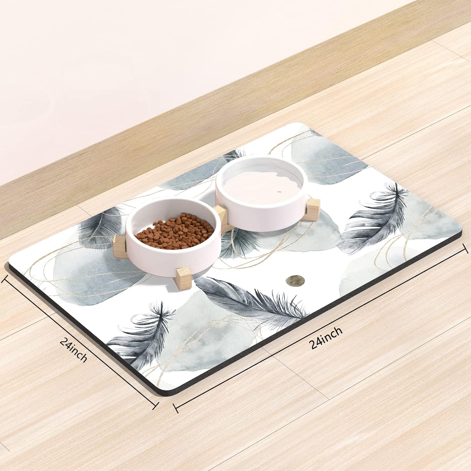 - Super Absorbent Placemat: Aesthetic dog food mat surface is made of absorbent suede with soft, anti-fray which can quickly absorb liquid and wet food stains to prevent prevents food & water from spilling onto floor