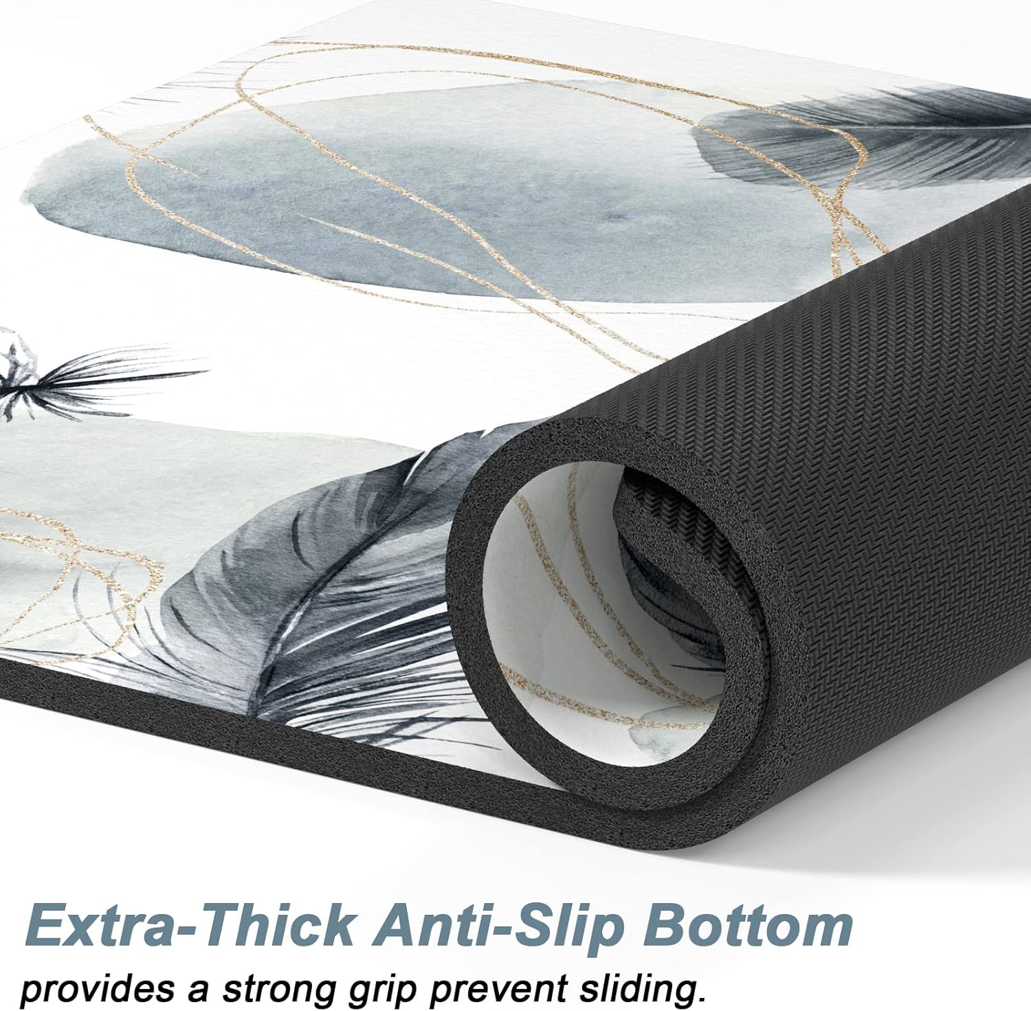 Rnivvi Dog Food Mat, 16" x 24" Absorbent Dog Cat Bowl Mat for Food and Water, Cute Anti-Slip Rubber Pet Feeding Rug Protect Floors, Puppy Placemat for Feeding & Watering Supplies, Abstract Plume