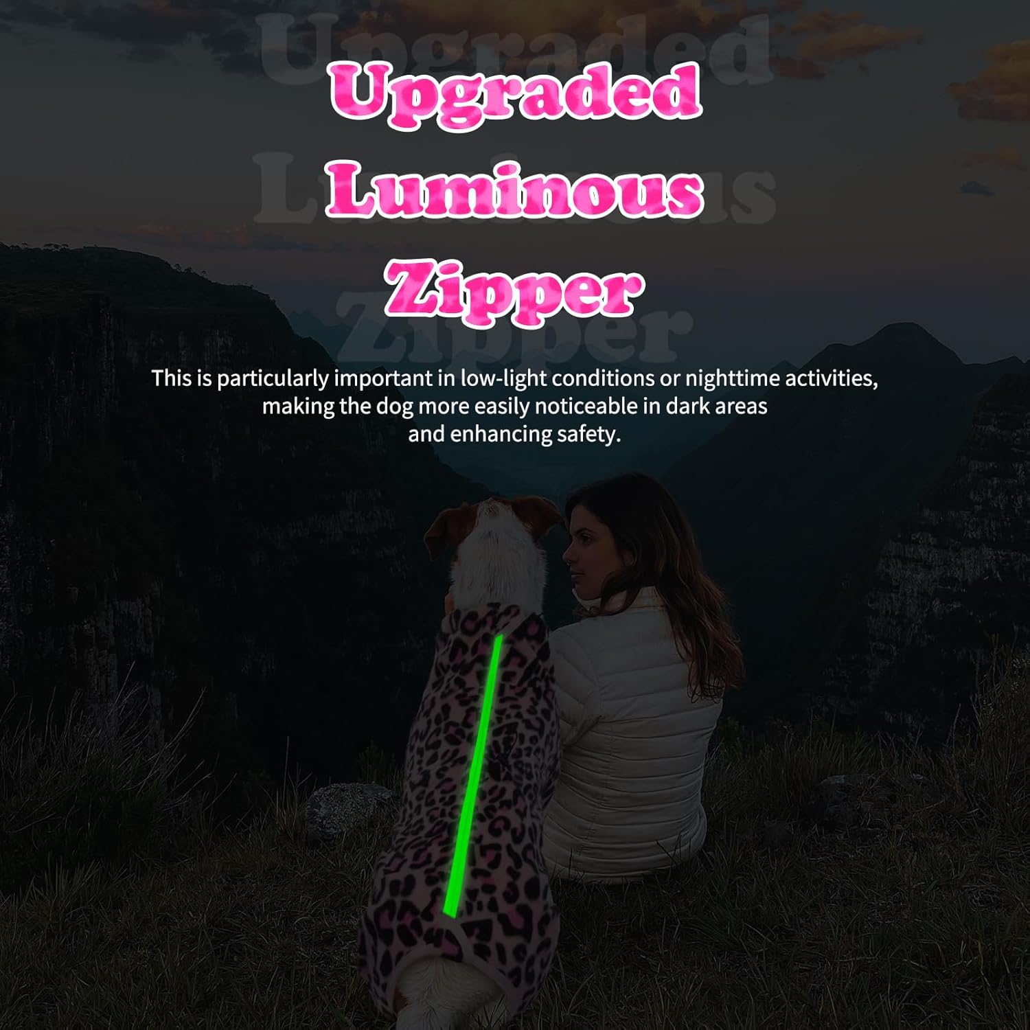 ROZKITCH Dog Winter Coat Soft Fleece Pullover Pajamas, Pet Windproof Warm Cold Weather Jacket Vest with Luminous Zipper, Jumpsuit Apparel Outfit Clothes for Small Medium Large Dog L-Pink M
