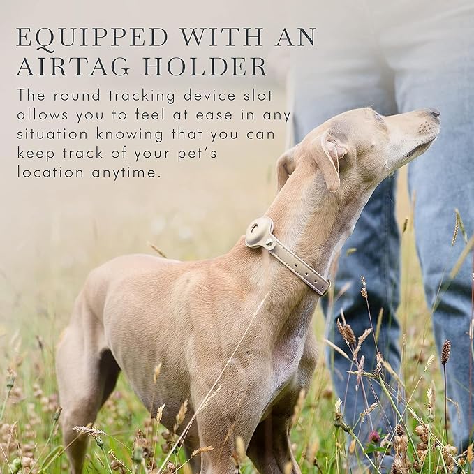 Cupertino Dog Collars, Harnesses & Leashes Made from Vegan Leather with Dog Tracker Device Holder Adjustable Dog Collar (Medium, Beige)
