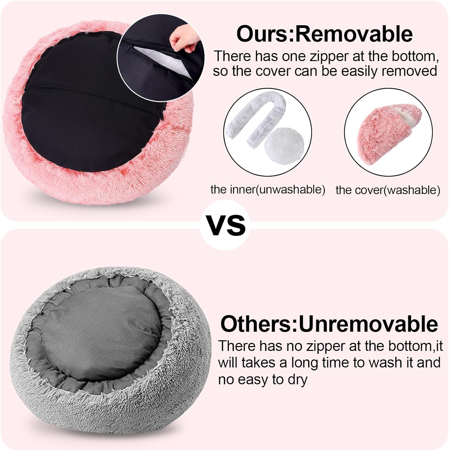 Calming Bean Mush Beds & Cat Cave with Hooded Cover, Removable Washable Round Beds for Small and Medium Pets, Anti-Slip Faux Fur, Fits Up to 15/25 lbs