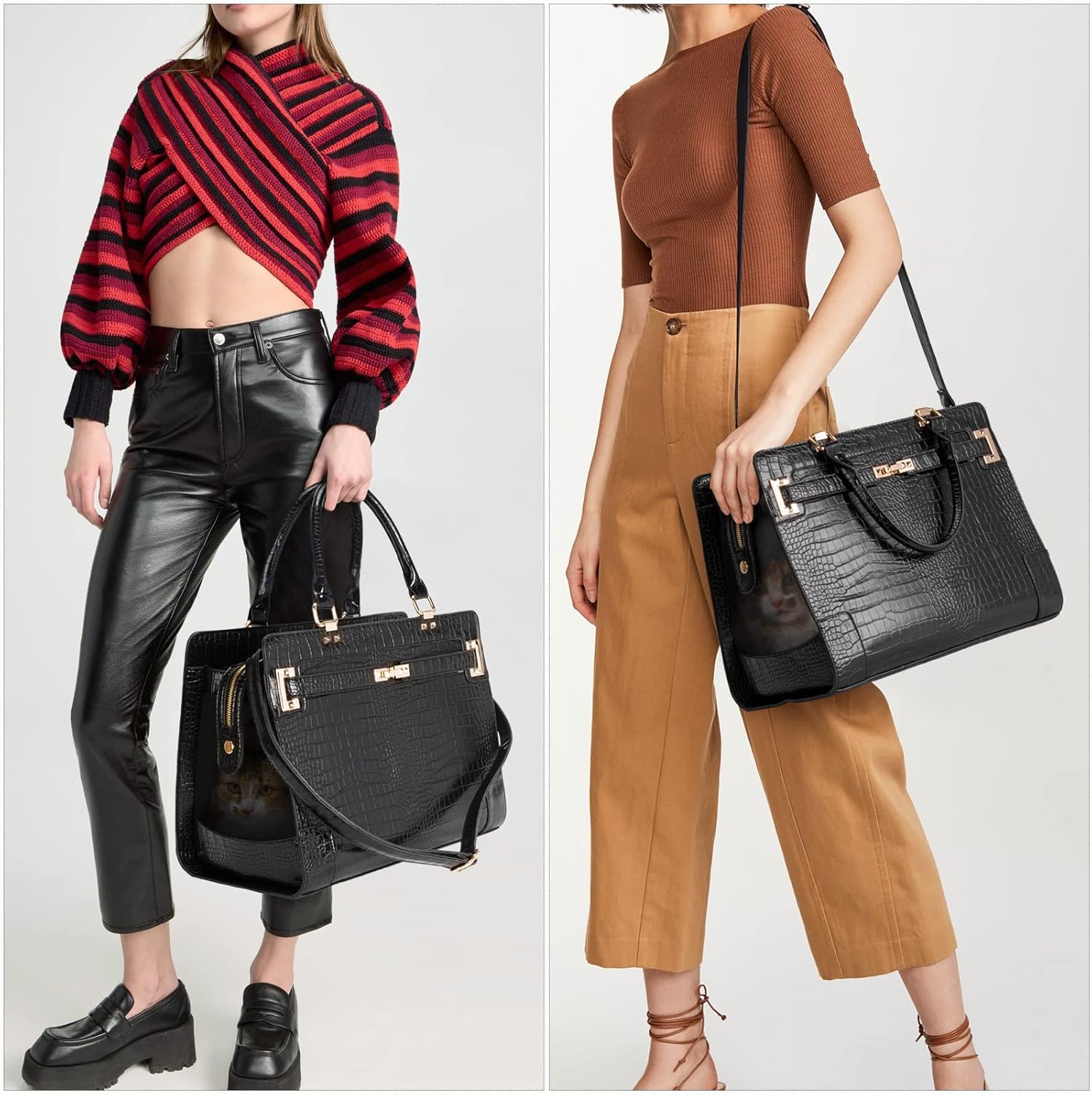 - 🐈[ Breathable & Visible ] Our pet purse both sides are mesh design, convenient for the pet to breathe the fresh air. pet feel cool and comfortable in the bag. Besides, pet can see outside, but people out cannot see the pet inside.