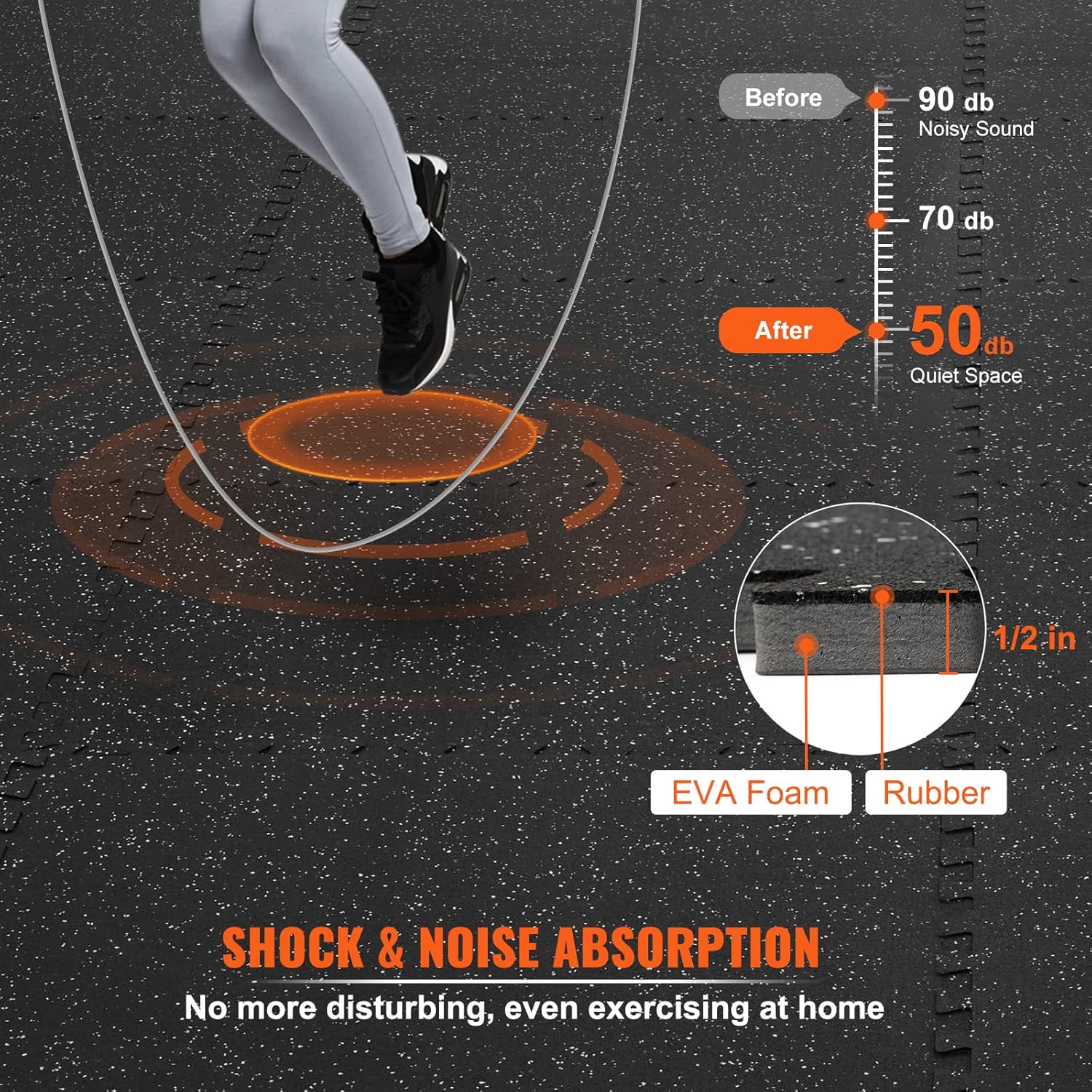 VEVOR 6PCS 0.56 inch Thick Gym Floor Mats, 25" x 25" EVA Foam & Rubber Top Interlocking Workout Floor Mats with 24 sq.ft Coverage, Waterproof Exercise Puzzle Flooring for Gym, Home, Garage, Basement