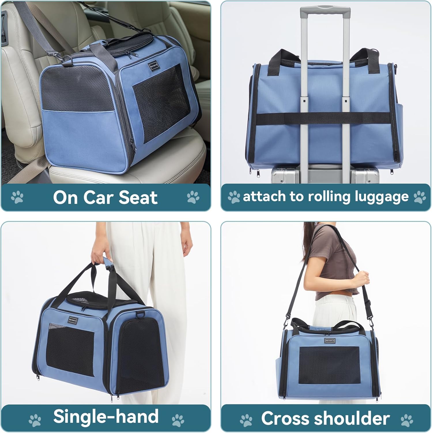 - [Dog Carrier for Small Dogs] The dog carrier comes with an extendable cozy fleece pet mat, which offers extra sleeping space for your traveling pet. The upgraded version has more comfortable space, suitable for all sizes of cats and small dogs.