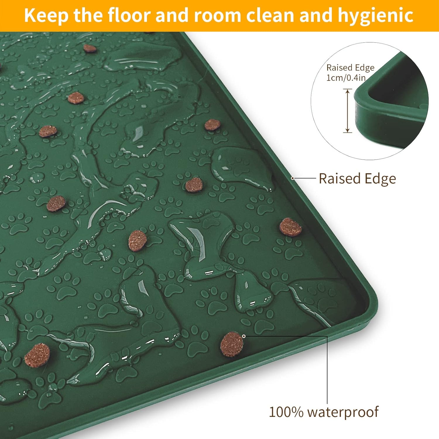 Ptlom Pet Placemat for Dog and Cat, Waterproof Silicone Pet Feeding Bowl Mats for Food and Water, Small Medium Large Dogs Mat Prevent Residues from Spilling to Floor, Hunter Green, 24.5" 16.5"