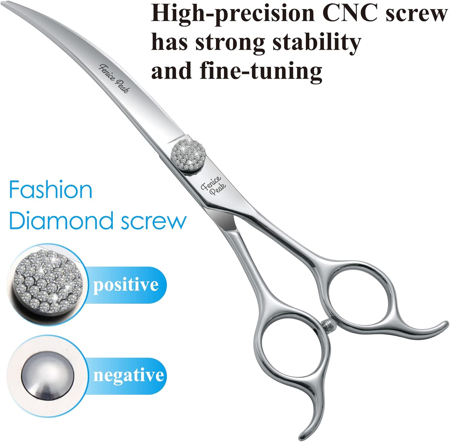 Fenice Peak 7.5‘’ Super Curved Dog Grooming Scissors with Jewelled Screw 440C Stainless Steel Pet Grooming Bending Scissors with Symmetrical Handle for Groomer and Home User
