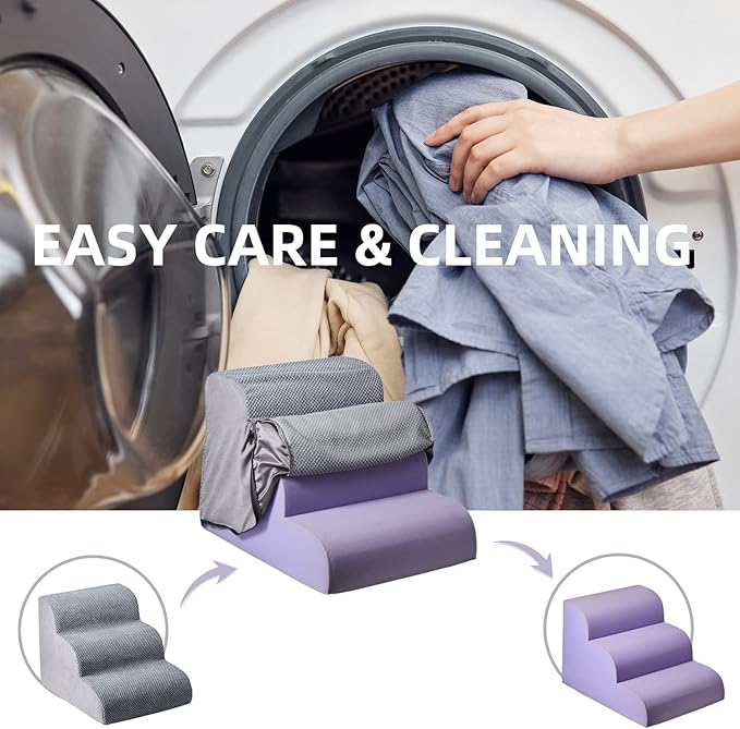 - Easy to Clean:Keep Your Dog Stairs Clean with a Soft, Removable Gray Cover: Perfect for Dog Stairs for High Beds, the Machine Washable Cover Ensures Hygiene and Easy Cleaning