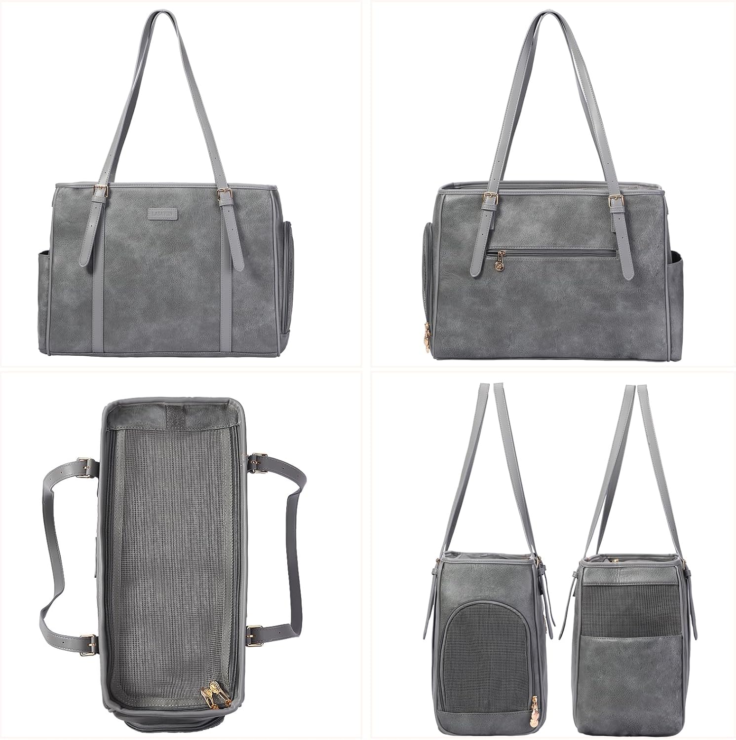 Fashion Dog Purse Pet Carrier Leather Bag for Small Dogs Cats Puppy, Portable Tote Bag Airline Approved Soft-Sided Carriers (Grey)