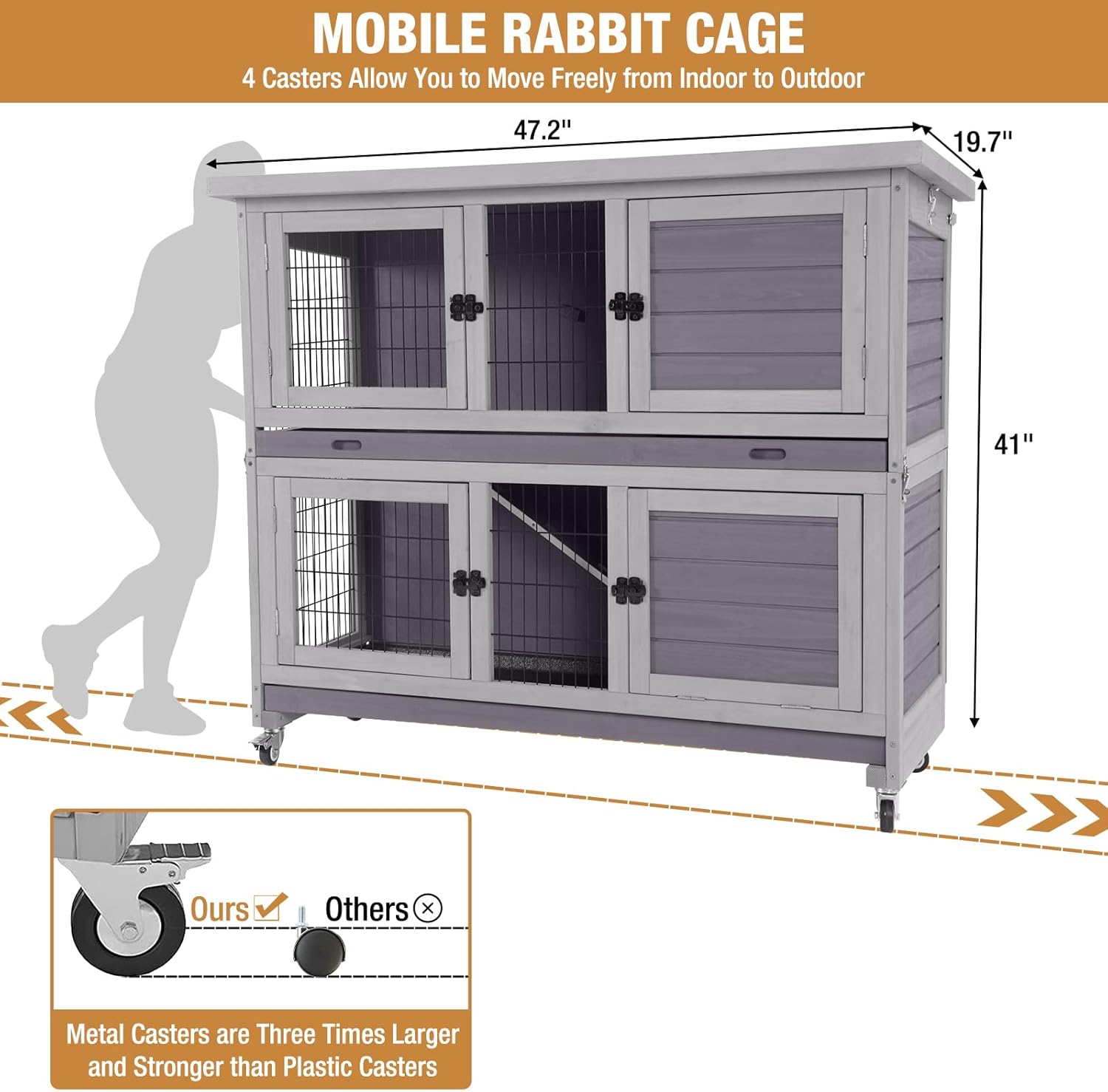 - Easy To Clean: Two levels rabbit cage with two removable plastic trays for easy cleaning. Easily reach all areas of the coop with four access areas