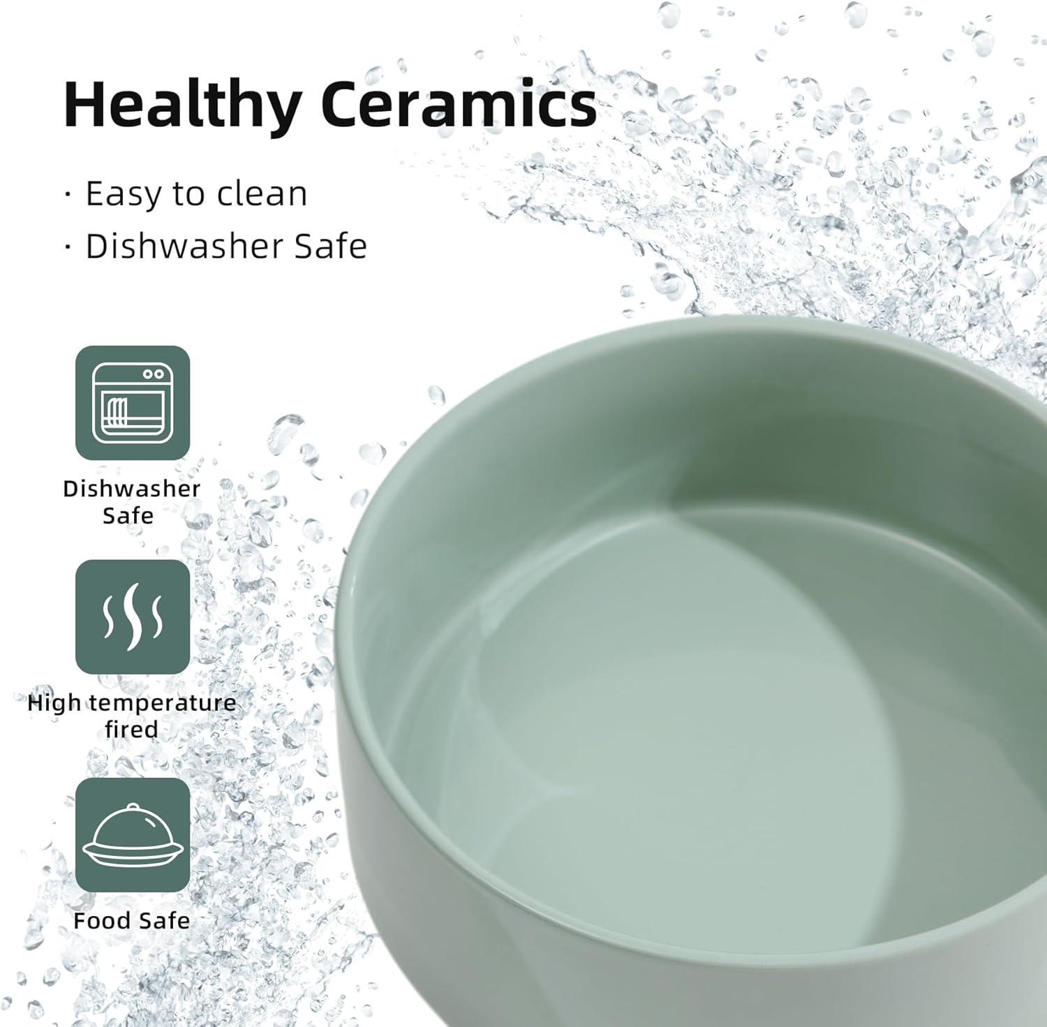 Ceramic 6.1inch Dog Bowls for Small and Medium Breed Dog Dish Pet Food and Water Bowl (Set of 2 Bowls - Light Green, 28oz)