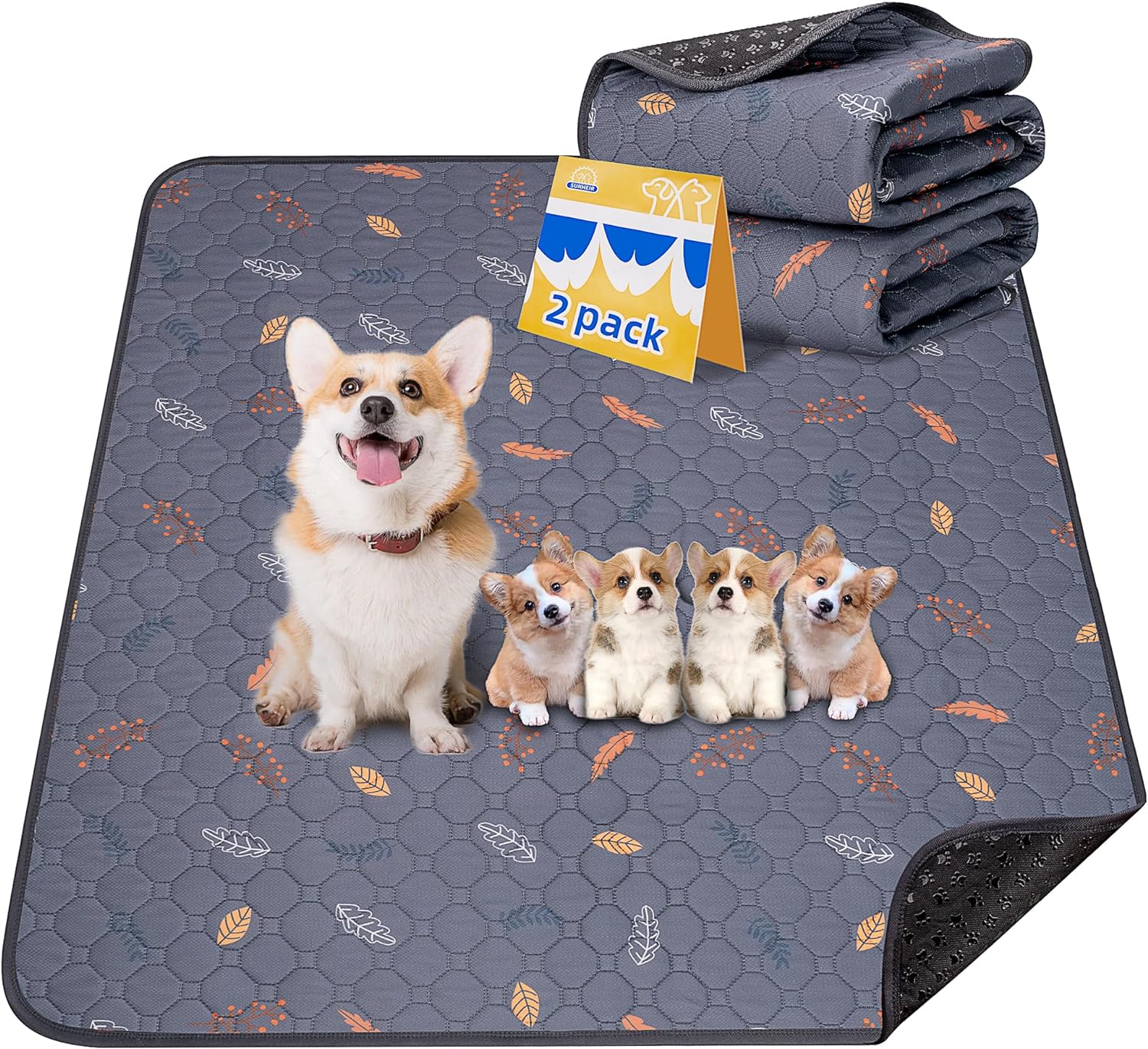 Sunheir Washable Pee Pads for Dogs 2-Pack Reusable Puppy Pads Pet Training Pads, Waterproof Dog Pee Pads for Crate, Whelping Pad, Non-Slip Protects Against Urine Leakage (Leaves - Deep Grey, 24x36)