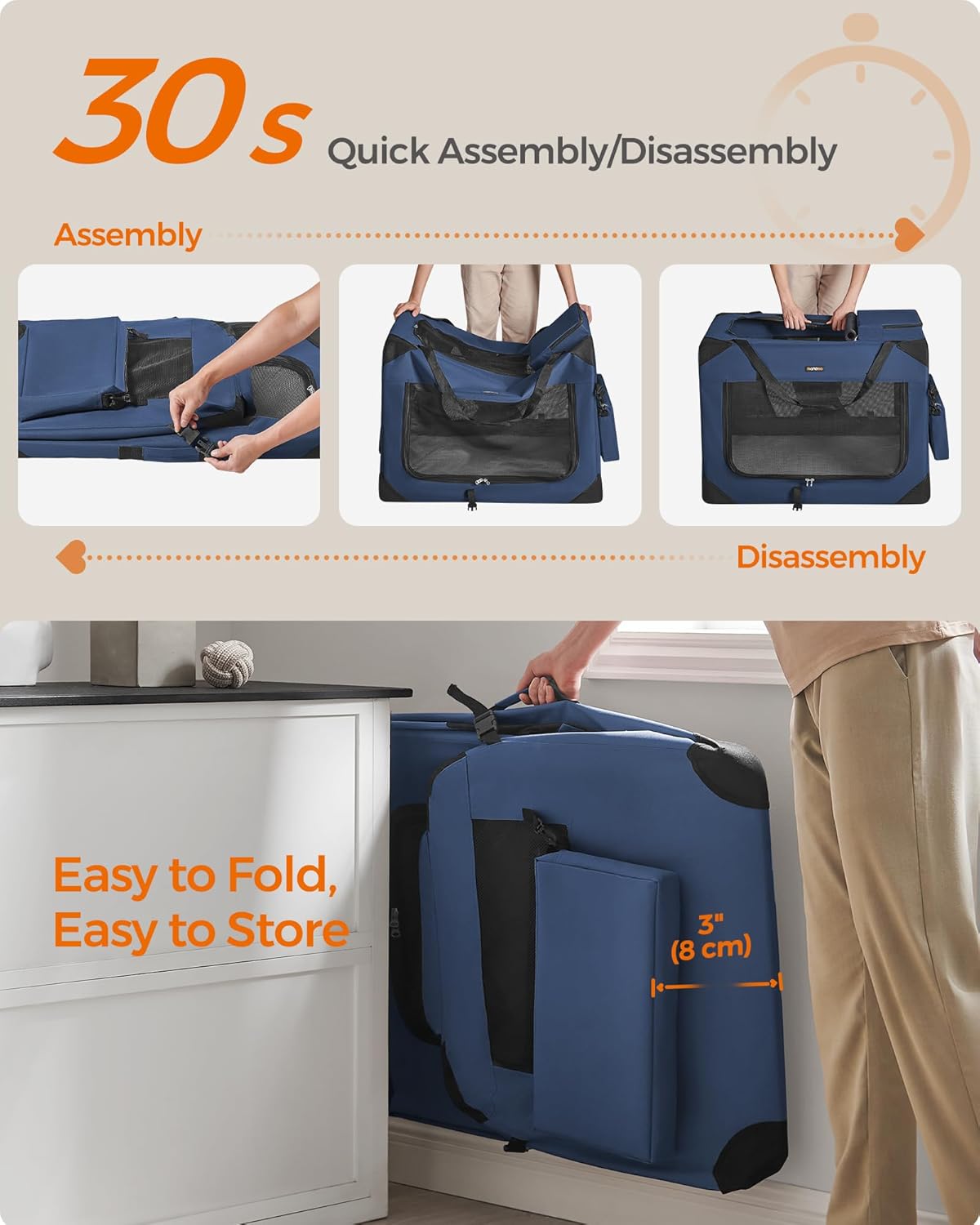 - 【QUICK ASSEMBLY & EASY FOLDING】The dog crate can be assembled in 30 seconds without tools and can be stored in the car or in the corner of your home after folding. It can be easily carried for indoor use or traveling, giving your dog a warm home anytime